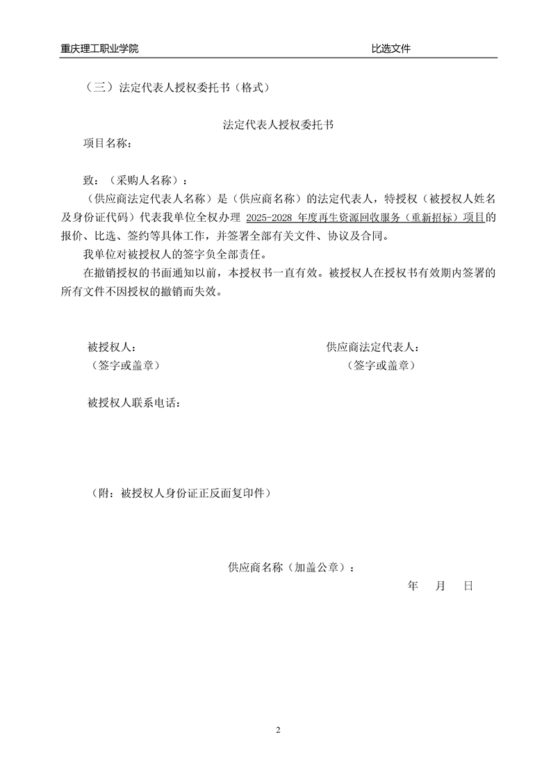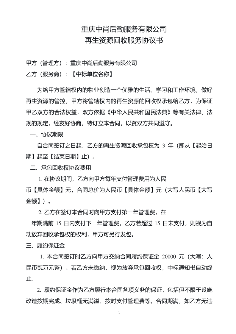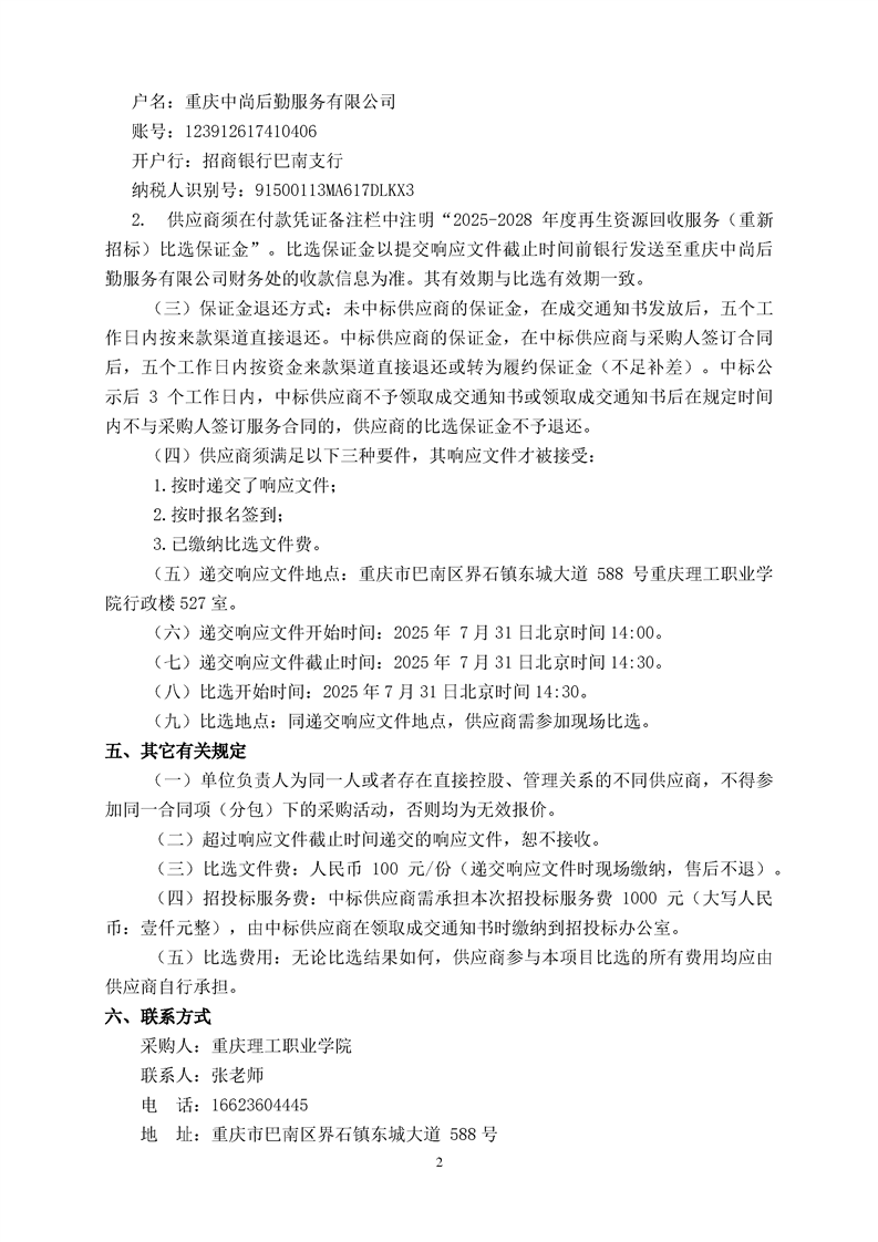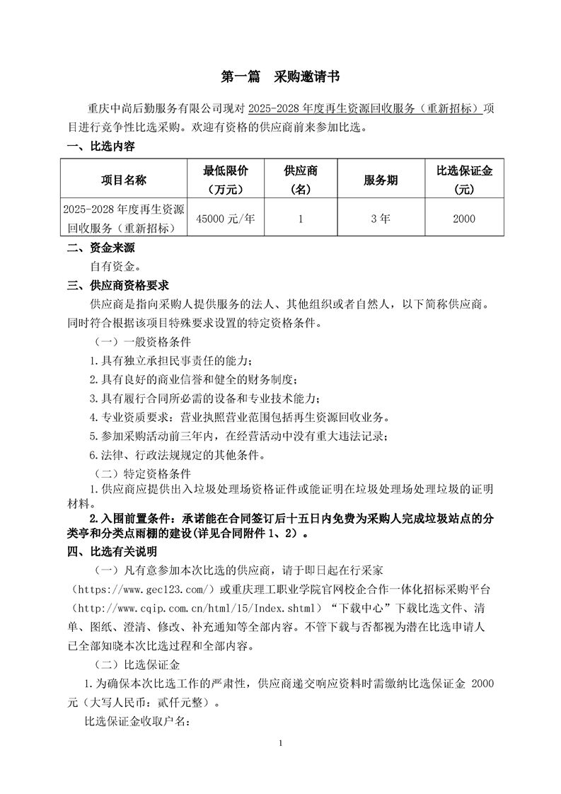 2025-2028年度再生资源回收服务(重新招标)竞争性比选公告