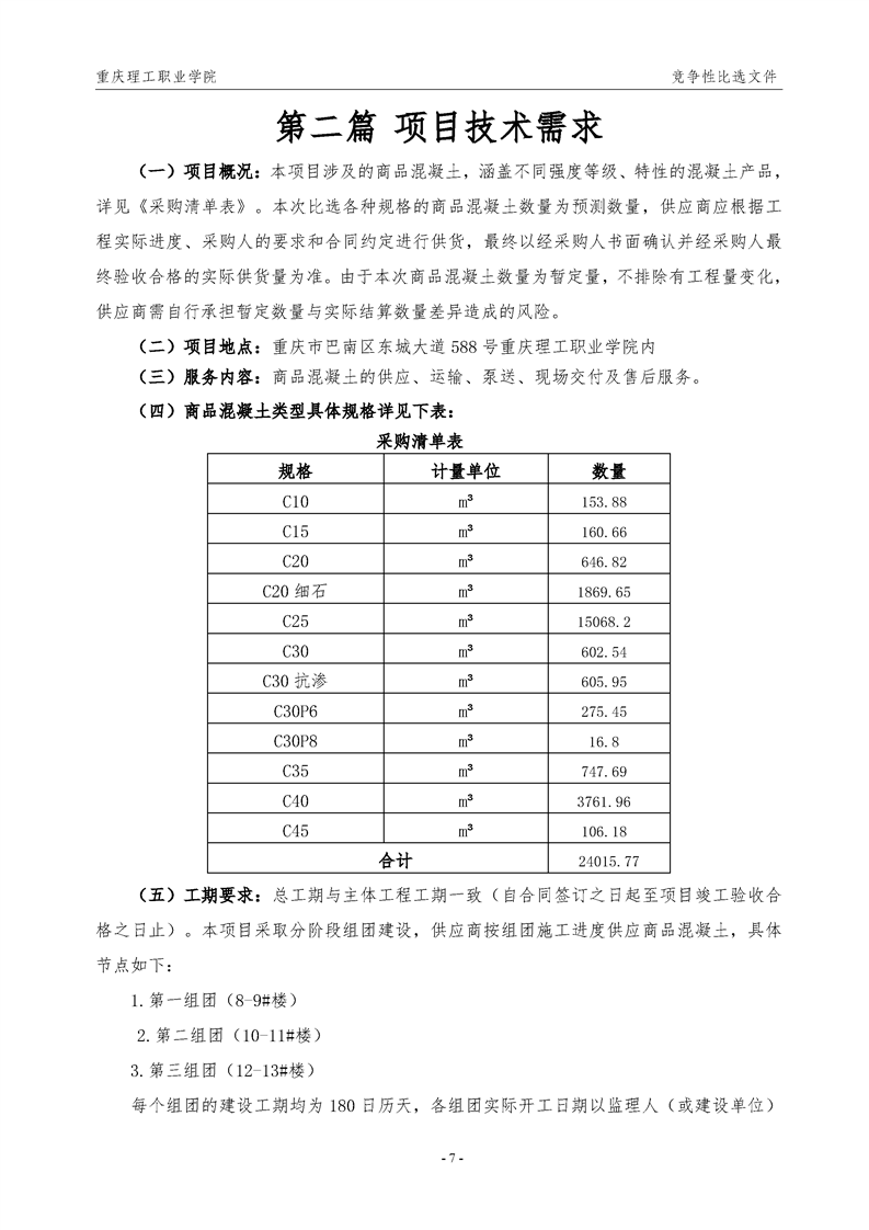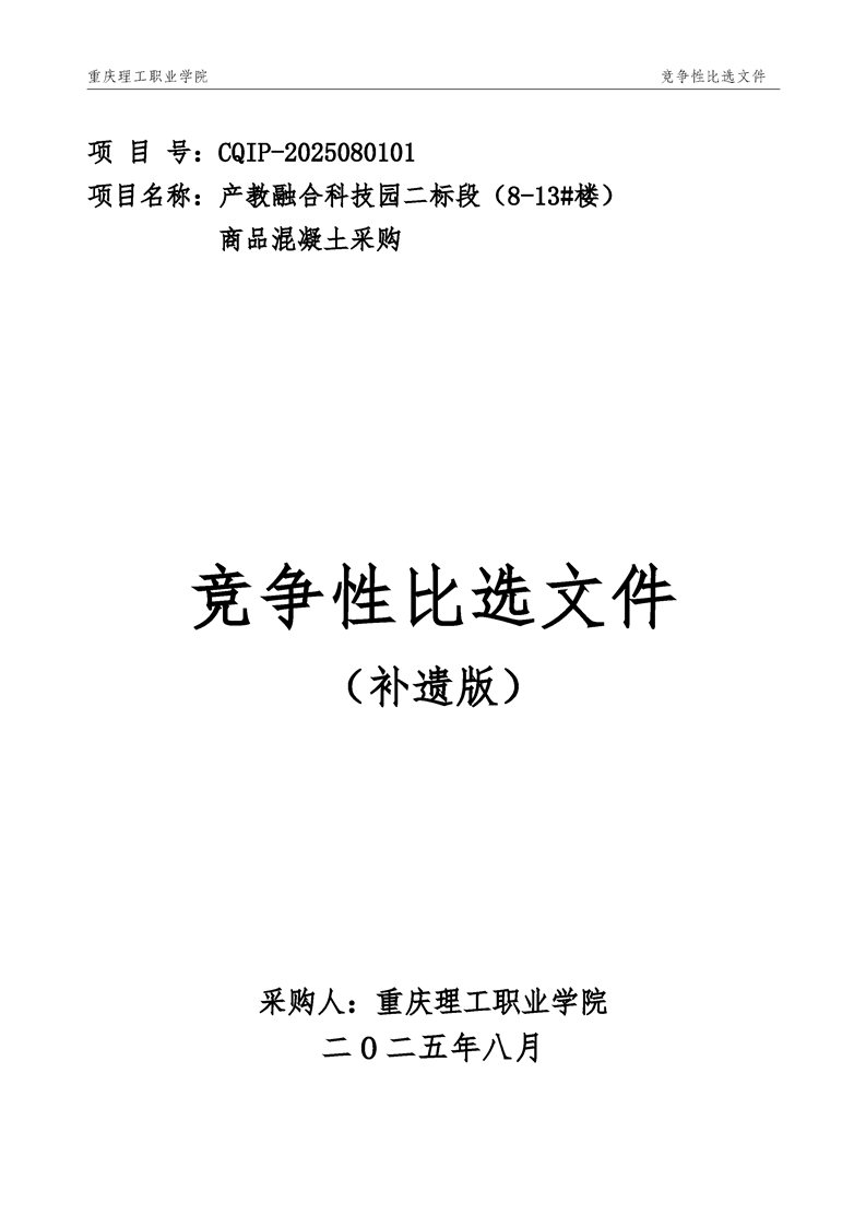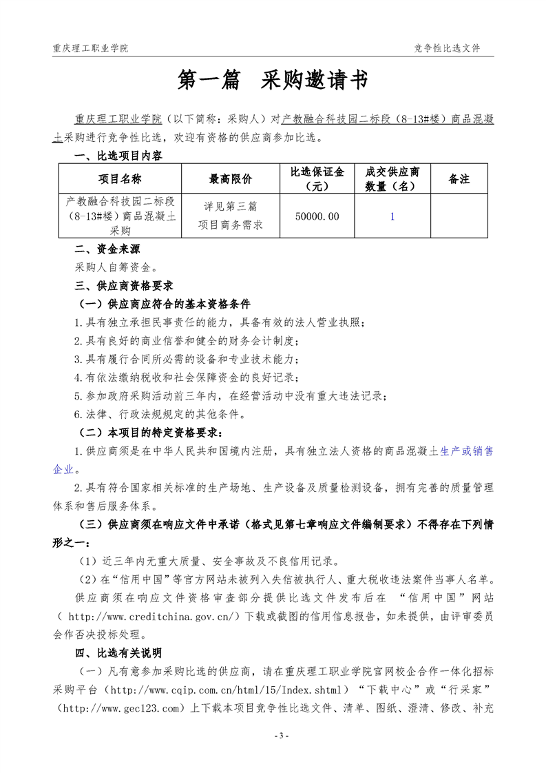 产教融合科技园二标段商品混凝土采购公告