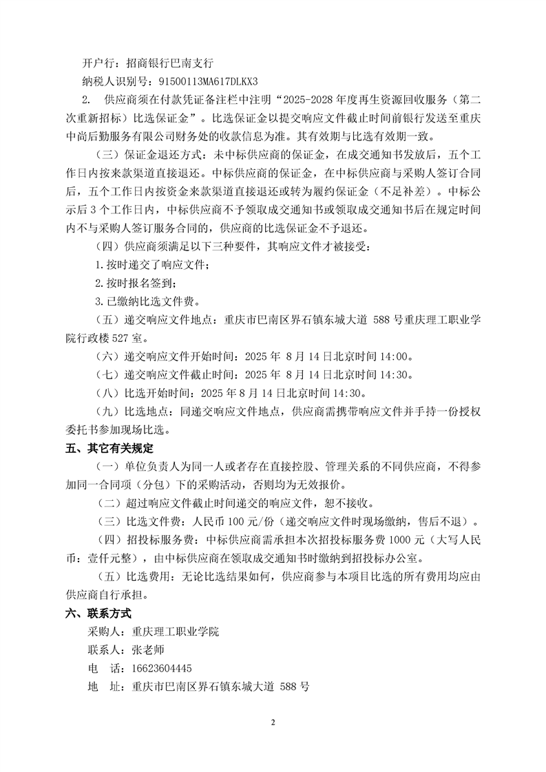 2025-2028年度资源回收(第二次重新招标)采购公告