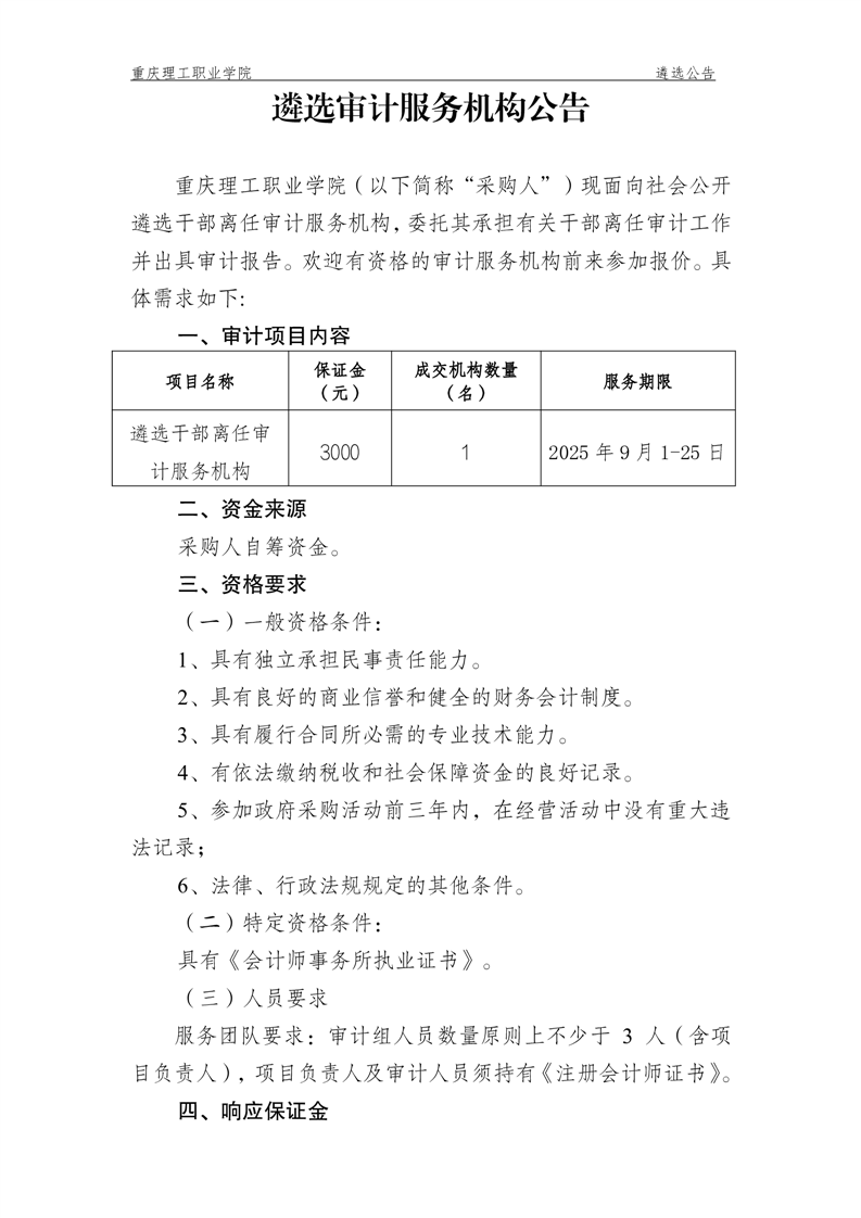 遴选干部离任审计服务机构公告