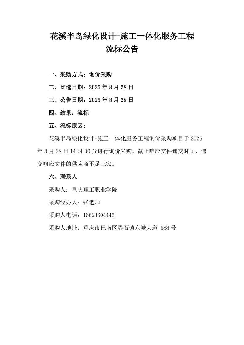 花溪半岛绿化设计+施工一体化服务工程流标公告