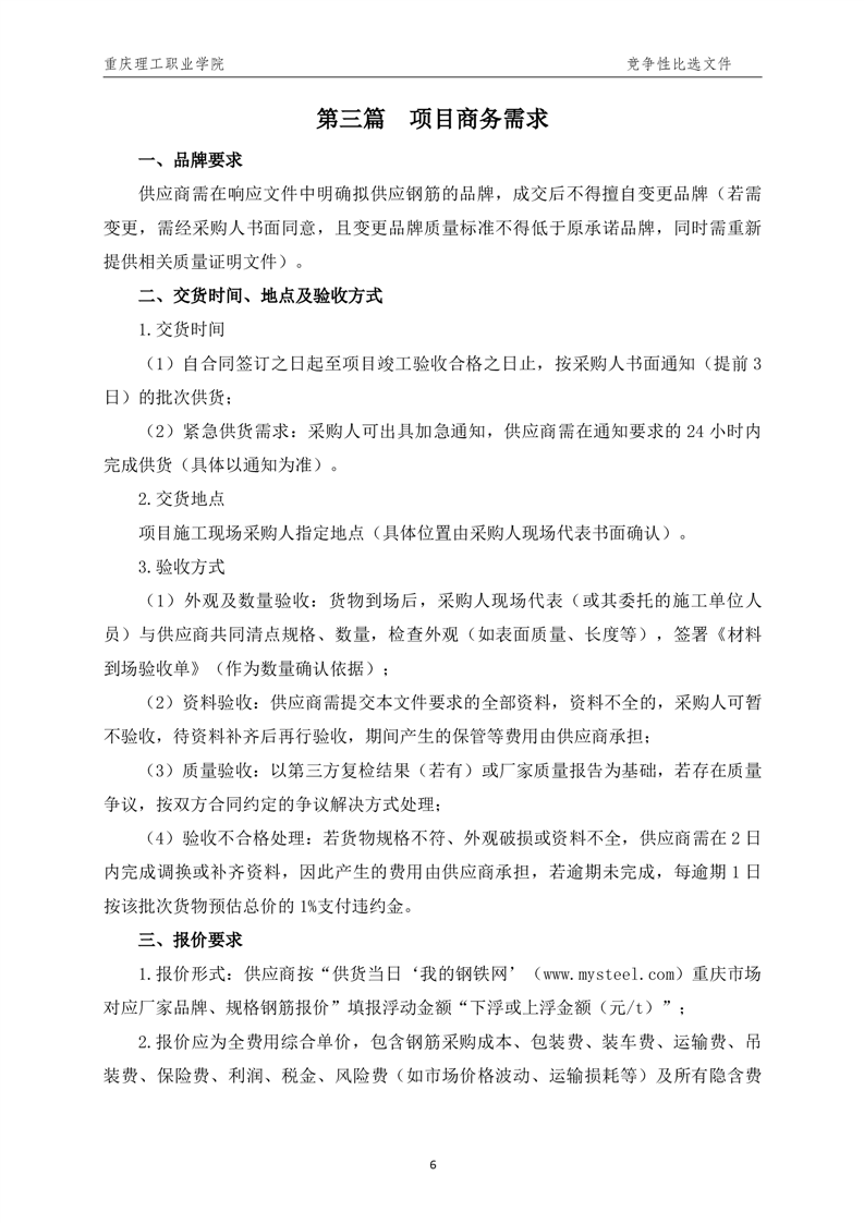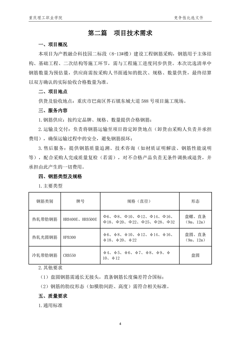 产教融合科技园二标段(8-13#楼)建设工程钢筋(第三次)采购公告