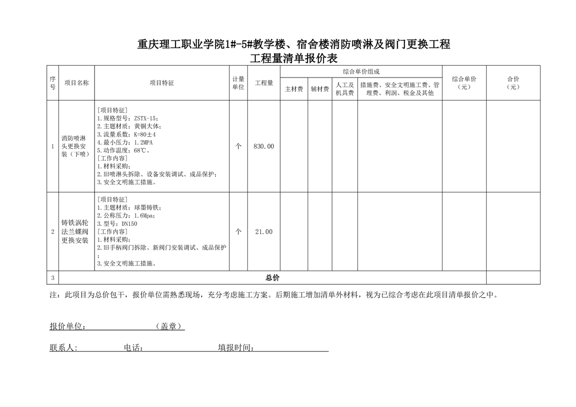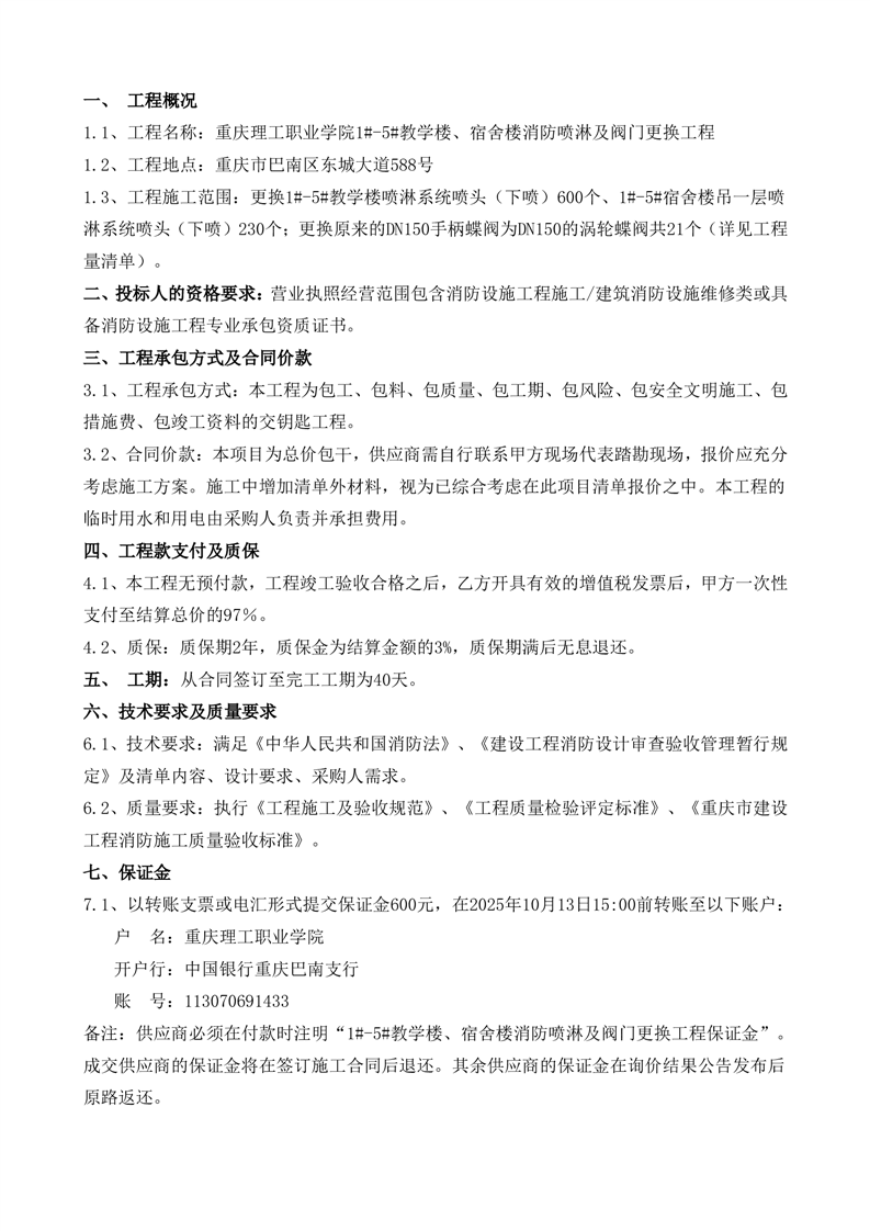 1#-5#教学楼、宿舍楼消防喷淋及阀门更换工程采购公告