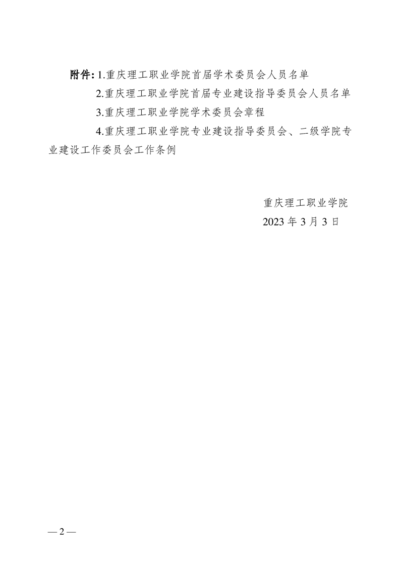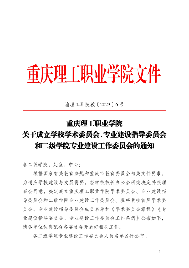 渝理工职院教〔2023〕6号成立学术委员会、专业建设指导委员会和二级学院专业建设工作委员会