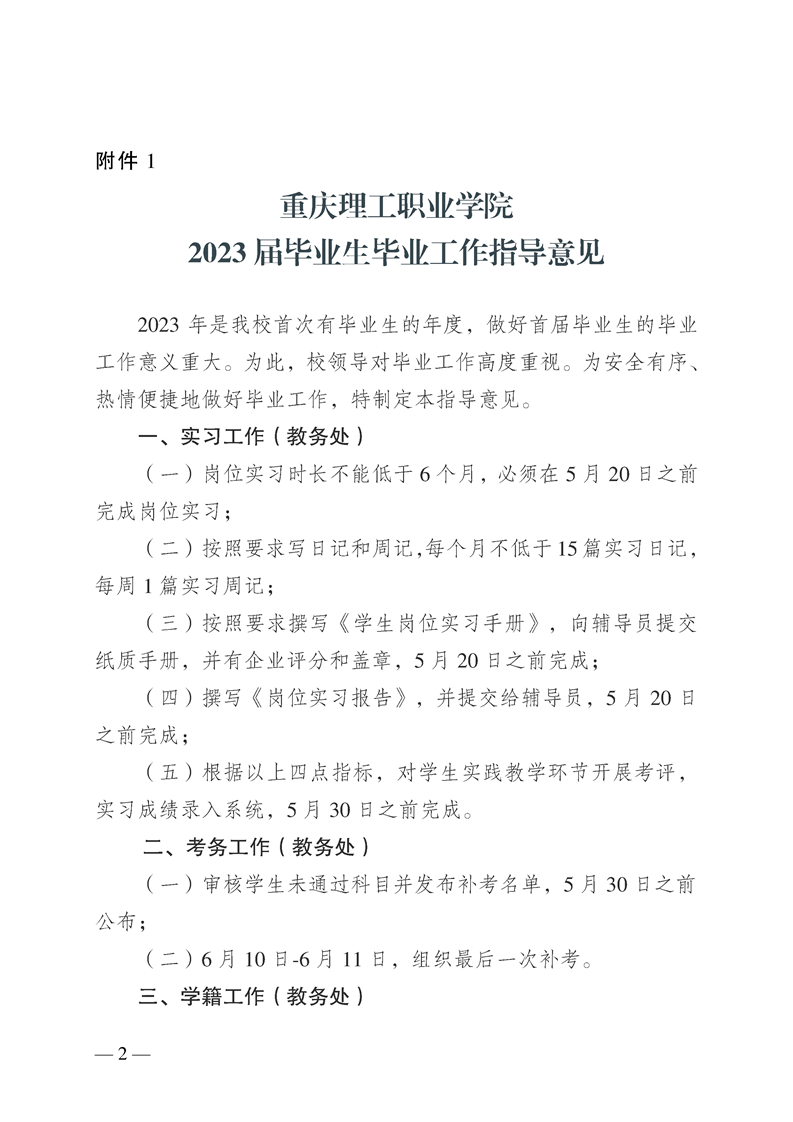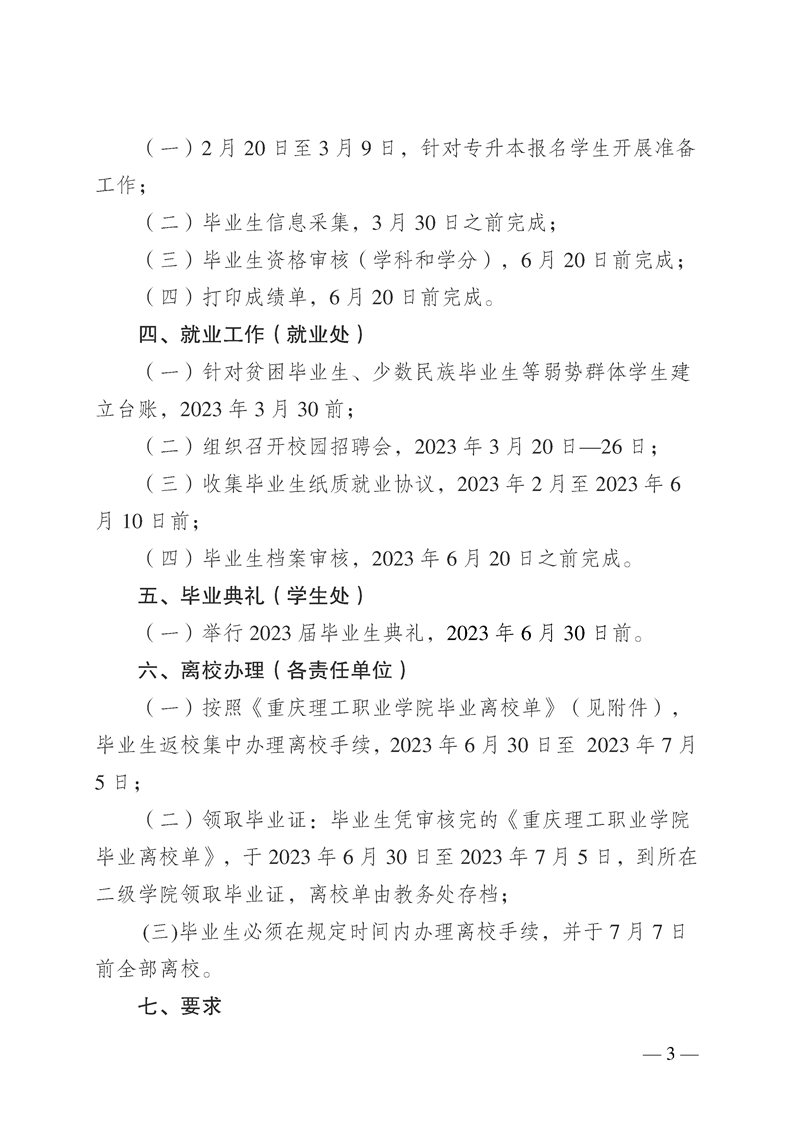 渝理工职院教〔2023〕8号印发关于2023届毕业生毕业工作安排的通知