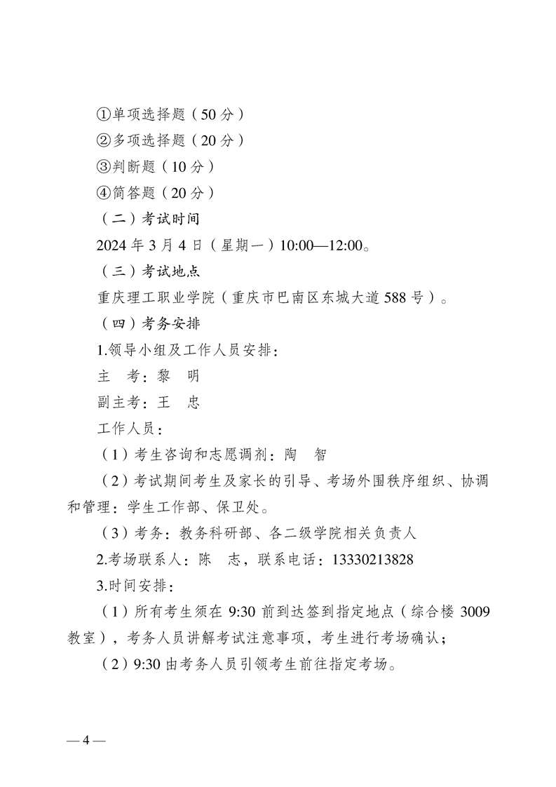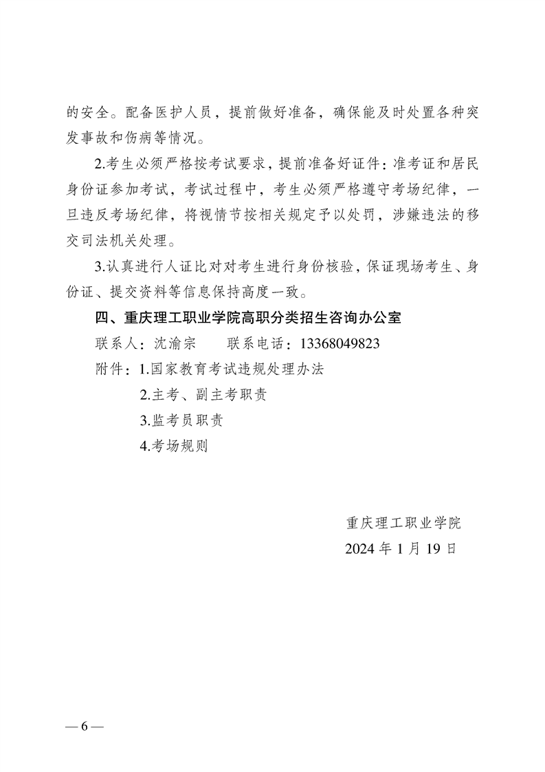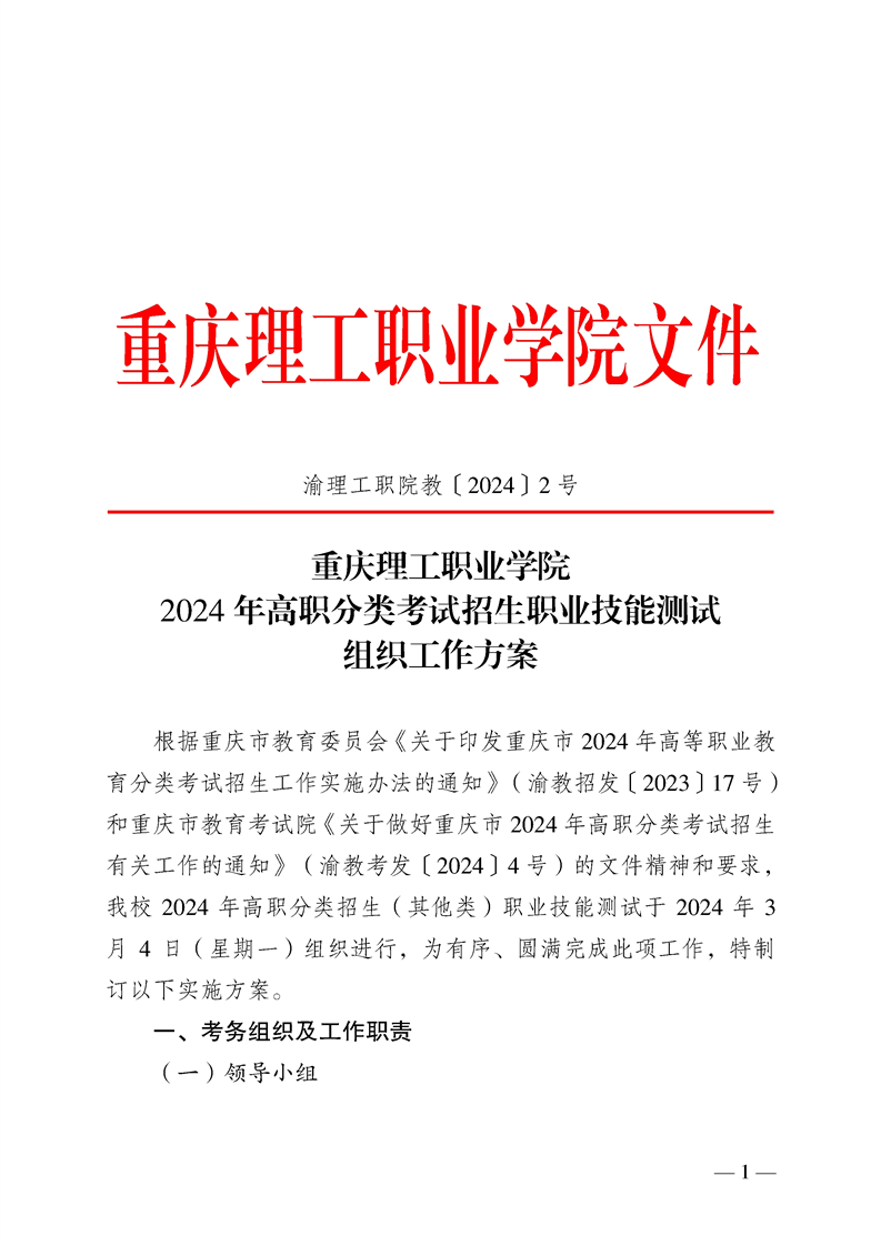 渝理工职院教〔2024〕2 号2024年高职分类考试招生职业技能测试组织工作方案