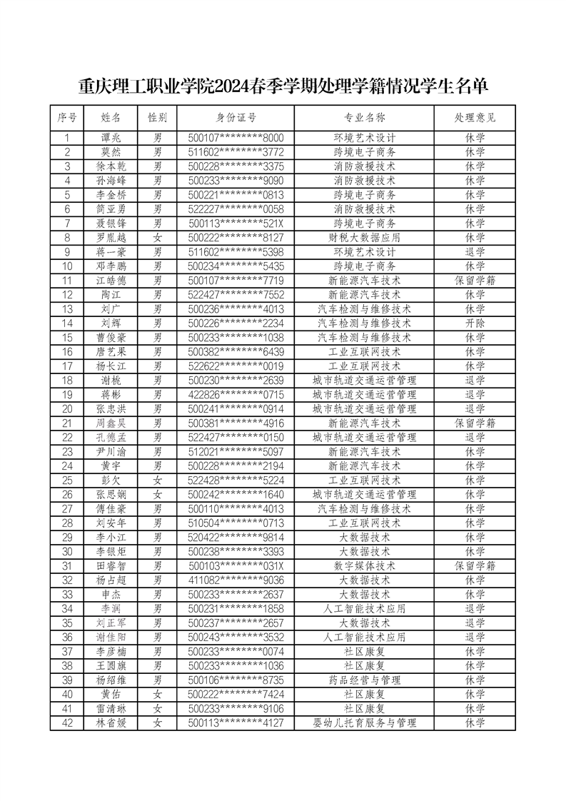 beat365英国官网网站2024春季学期处理学籍情况学生名单