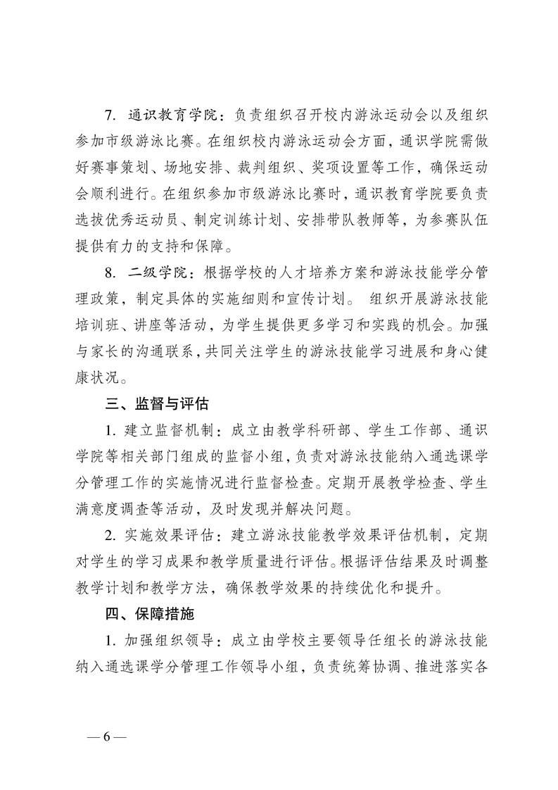 beat365英国官网网站关于游泳技能纳入通选课学分管理的工作方案(试行)