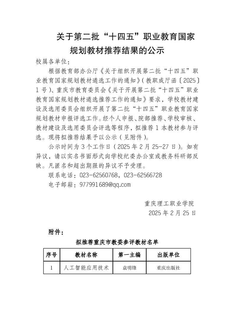 关于第二批“十四五”职业教育国家规划教材推荐结果的公示