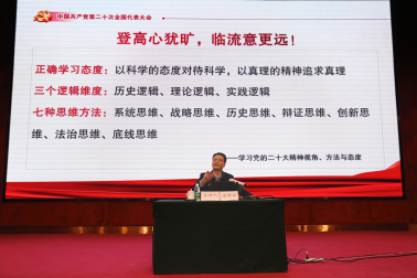 甘校长强调,认真学习领会党的二十大精神不是一时的功课,而是长期持续的任务,我们要切实增强学习贯彻党的二十大精神的政治自觉、思想自觉、行动自觉,将学习和工作同党的二十大精神结合起来,将自身发展目标同国家社会的前途命运紧密结合起来,深刻领会和把握我国发展面临的新的战略机遇、新的战略任务、新的战略阶段、新的战略要求、新的战略环境。