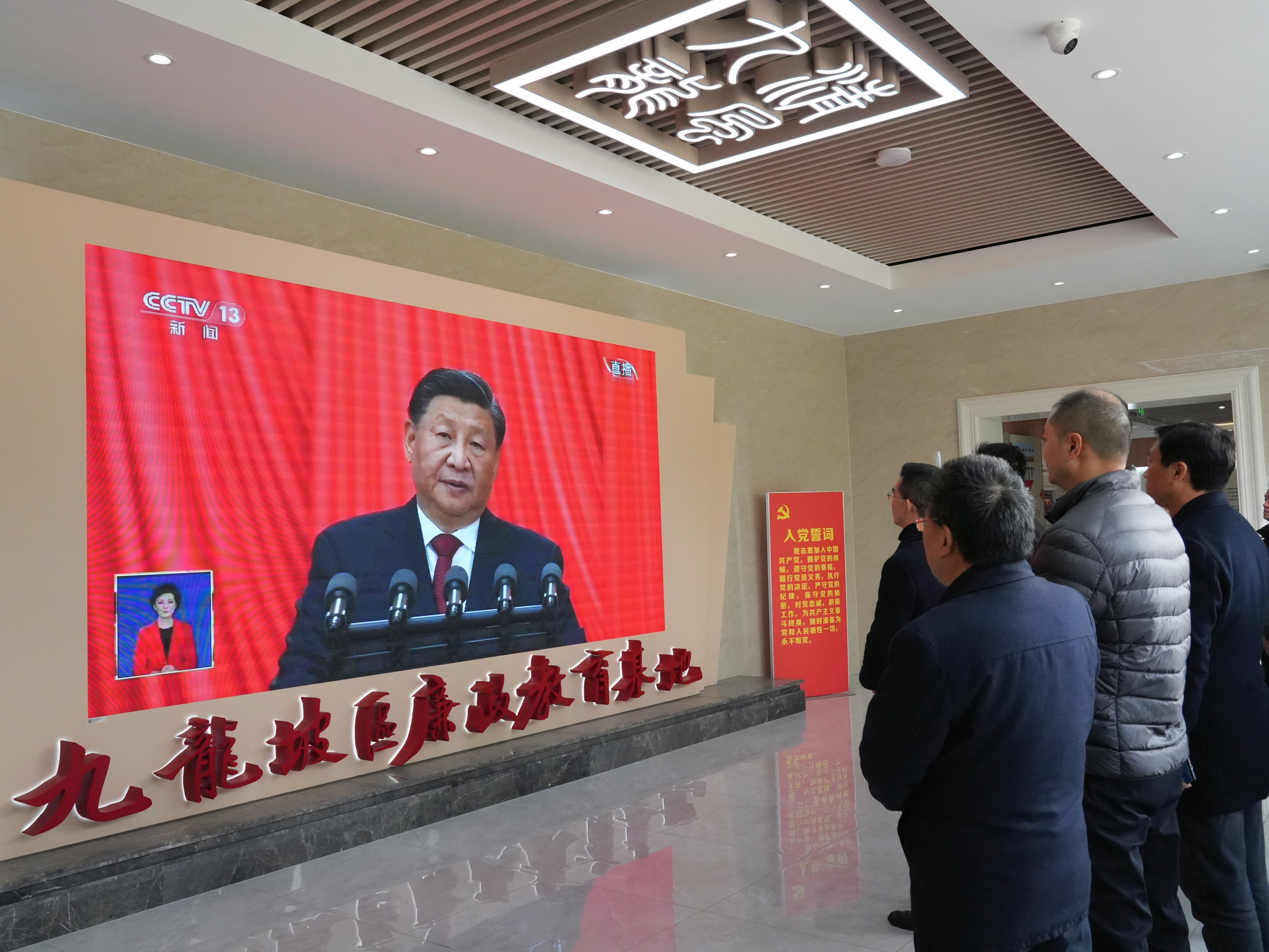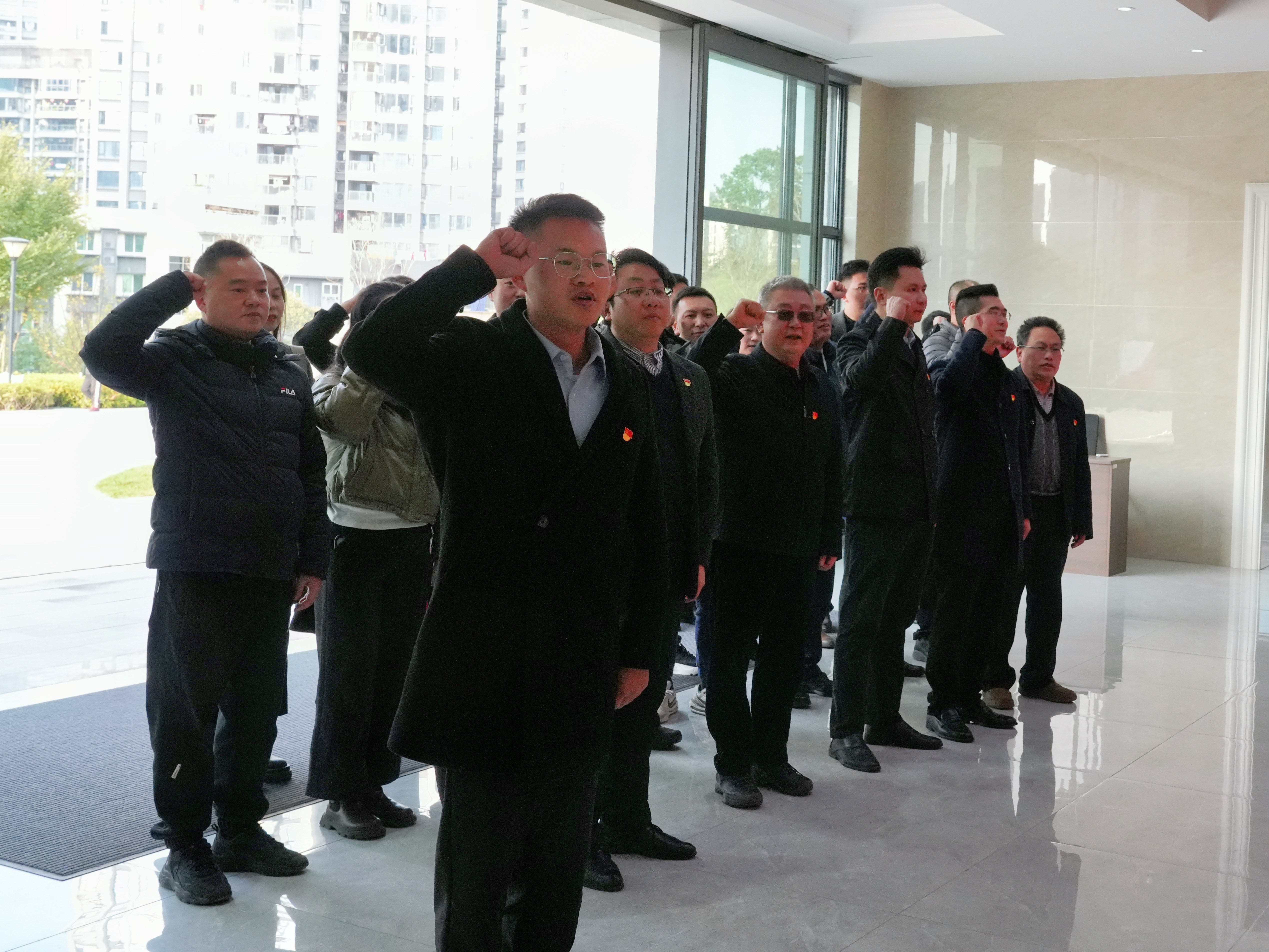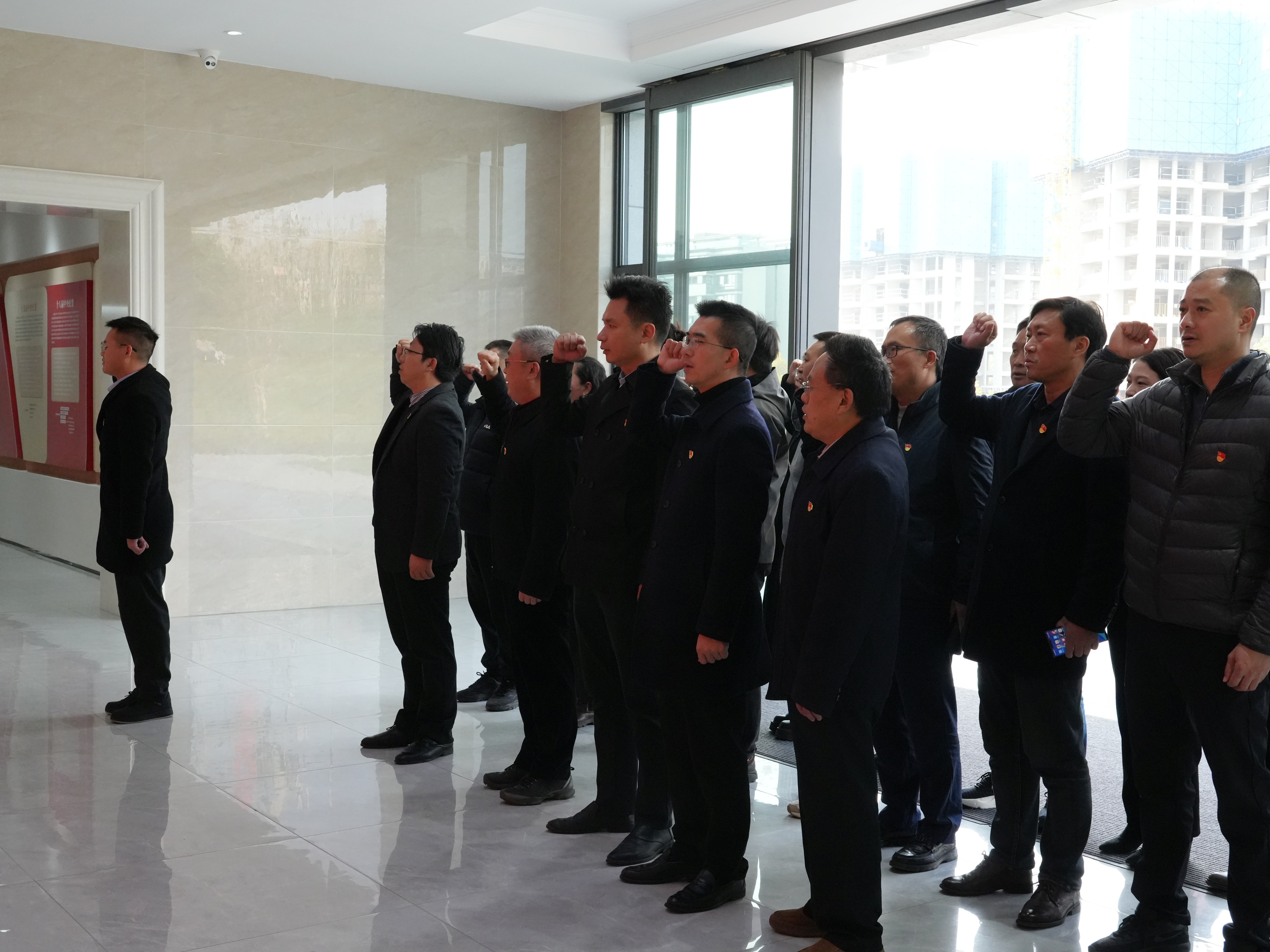 到达基地后,在纪委副书记、党群工作部副部长黎兴伟的领誓下,全体党员面向党旗重温入党誓词。接着,大家观看了专题教育短片《习近平总书记的告诫》。