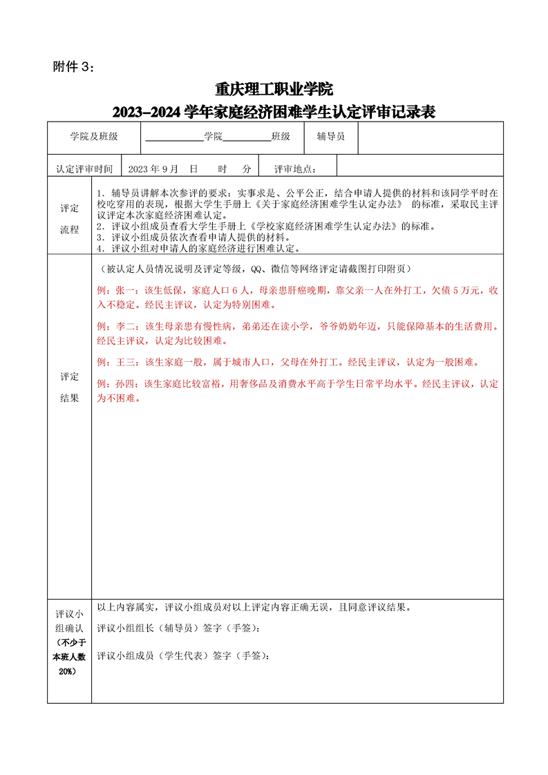 > 2023-2024学年家庭经济困难学生认定评审记录表 > 正文
