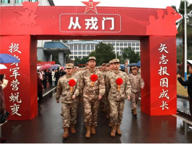 胸前佩戴着鲜艳大红花,身着崭新军装的新兵代表们脸上洋溢着自豪的笑容。他们在同学们热烈的掌声中,走上舞台,接受领导、老师和家长的祝福。