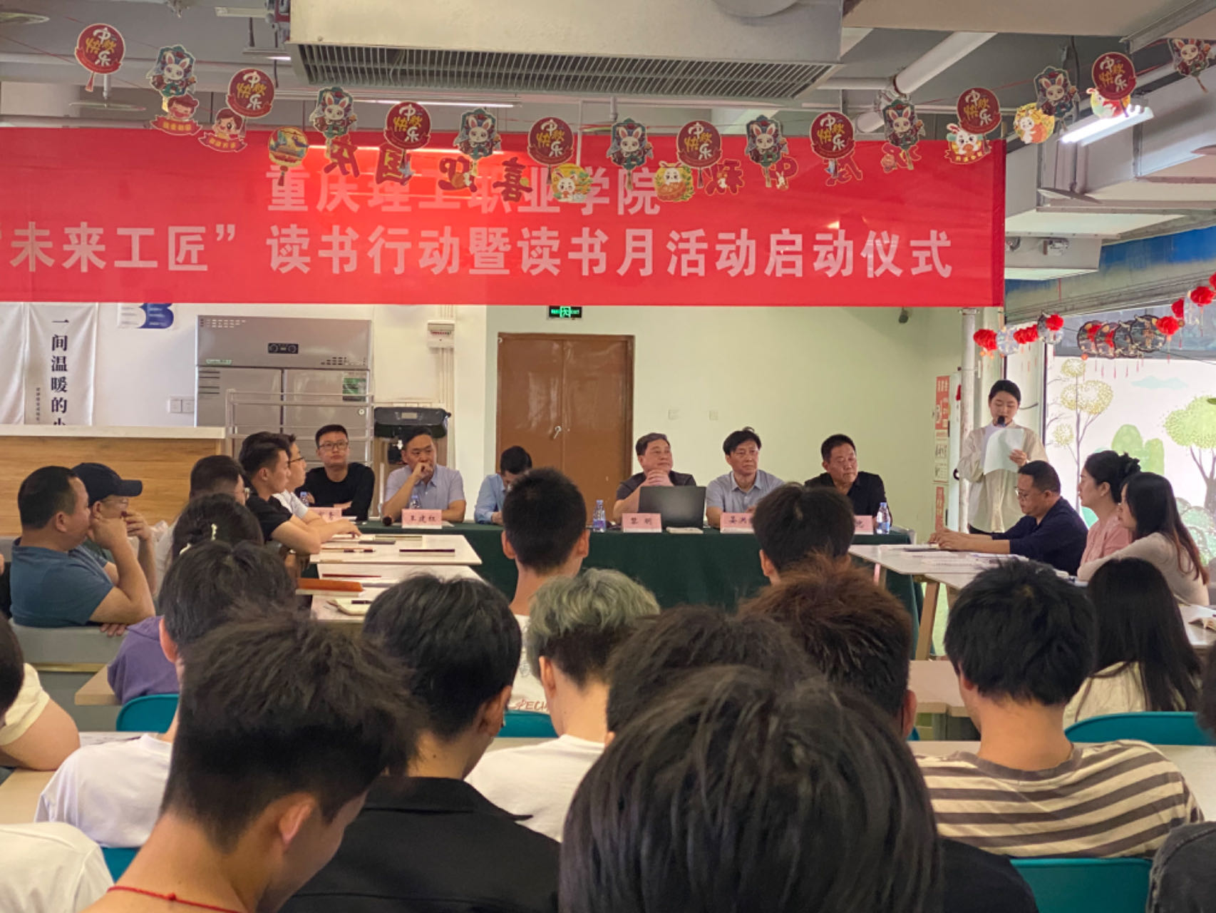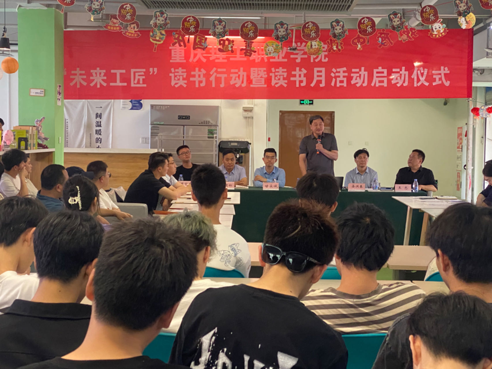 4月23日,正是第29个世界读书日。beat365英国官网网站组织150余名师生在学校图书馆隆重举行以“育时代新人,铸未来工匠”为主题的读书行动暨读书月活动启动仪式。