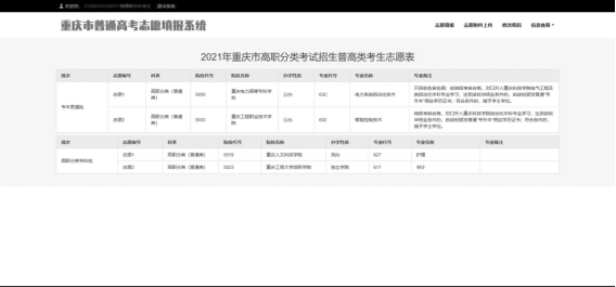 4.查询志愿填报结果。考生填报完志愿后,务必核对所填报志愿信息,确认无误并确定保存后安全退出系统。安全退出后,须再次登录系统通过“信息查看”功能中的“志愿信息”菜单复查: 各类信息是否准确无误,所填志愿与个人志愿草表是否一致,避免输错代号而导致填报志愿有 误;各批次志愿是否都填报成功、院校及专业是否个人志愿;填报多类志愿的考生,还要检查需填报的各类志愿表是否都已成功填报。