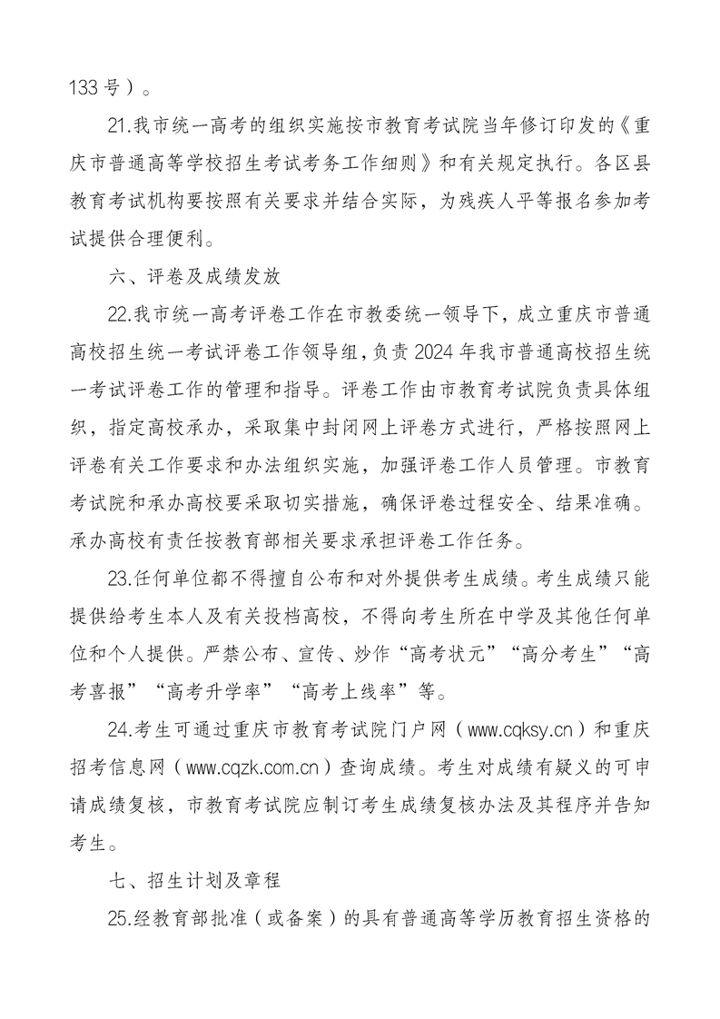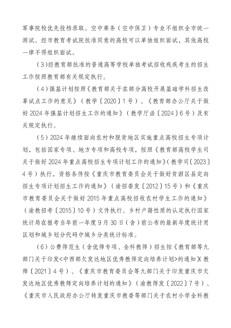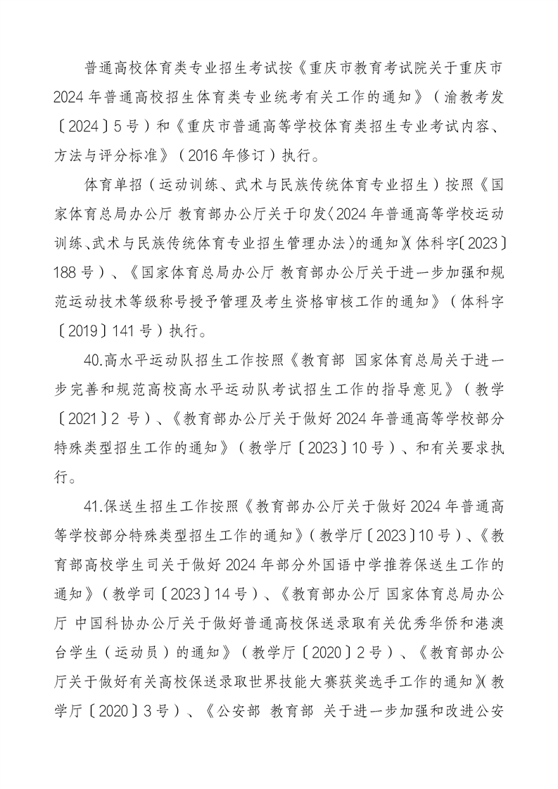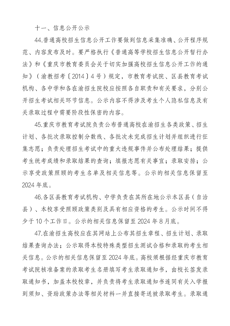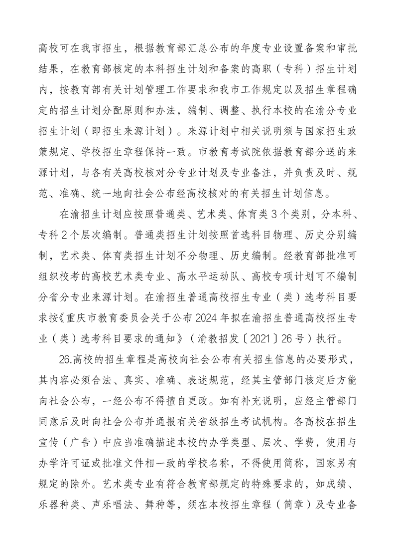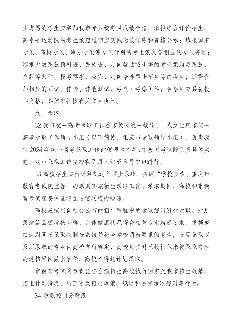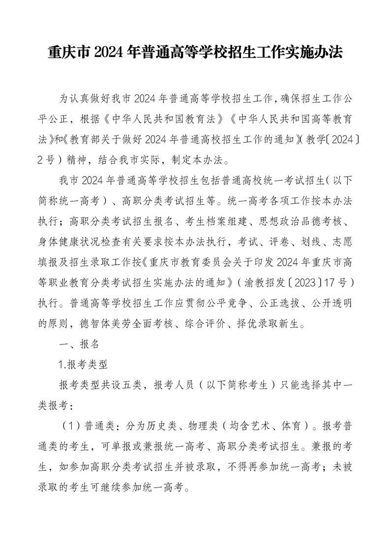 重庆市2024年普通高等学校招生工作实施办法