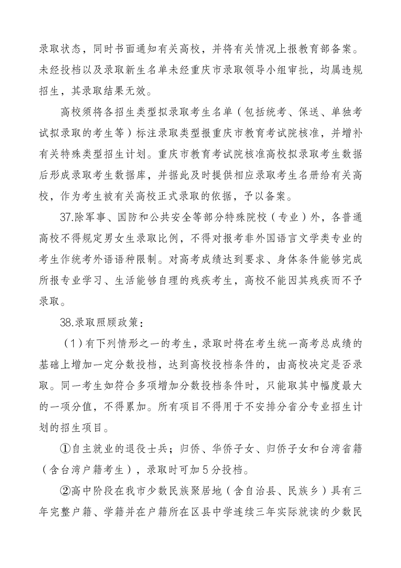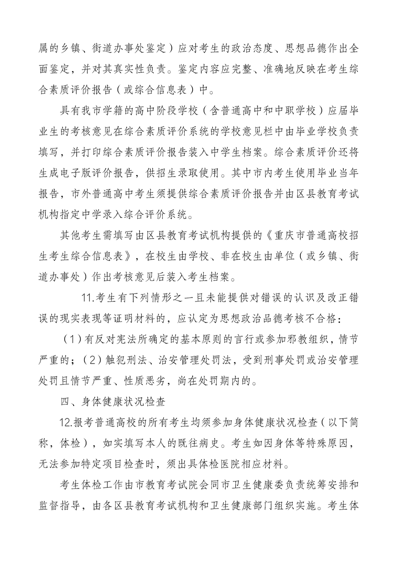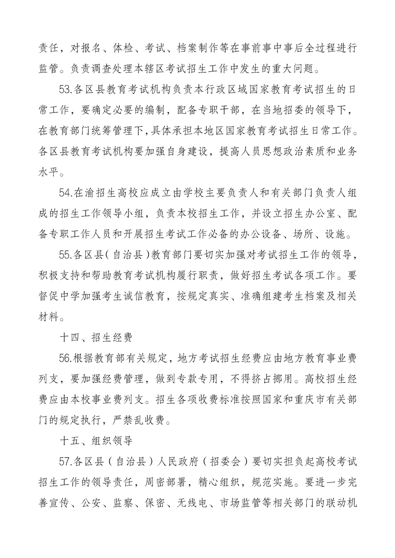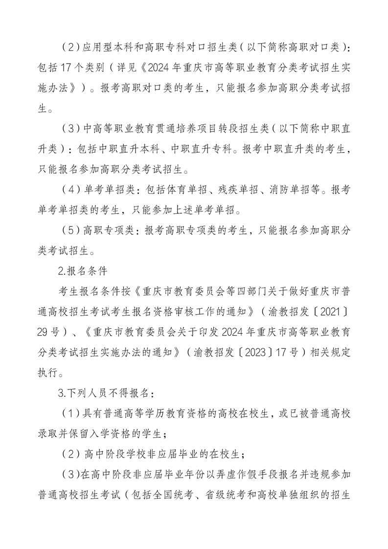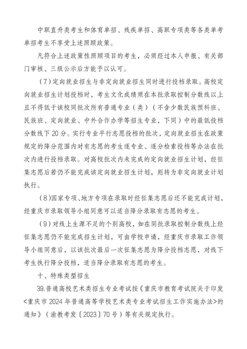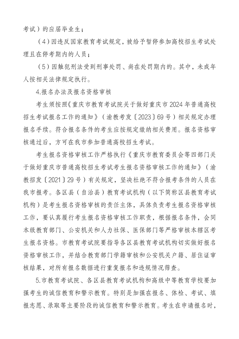 重庆市2024年普通高等学校招生工作实施办法