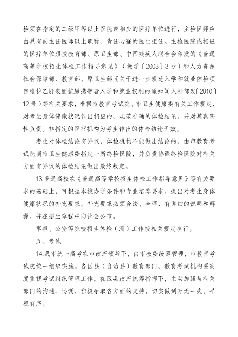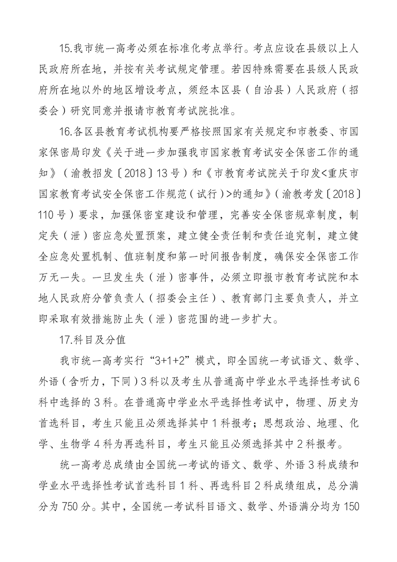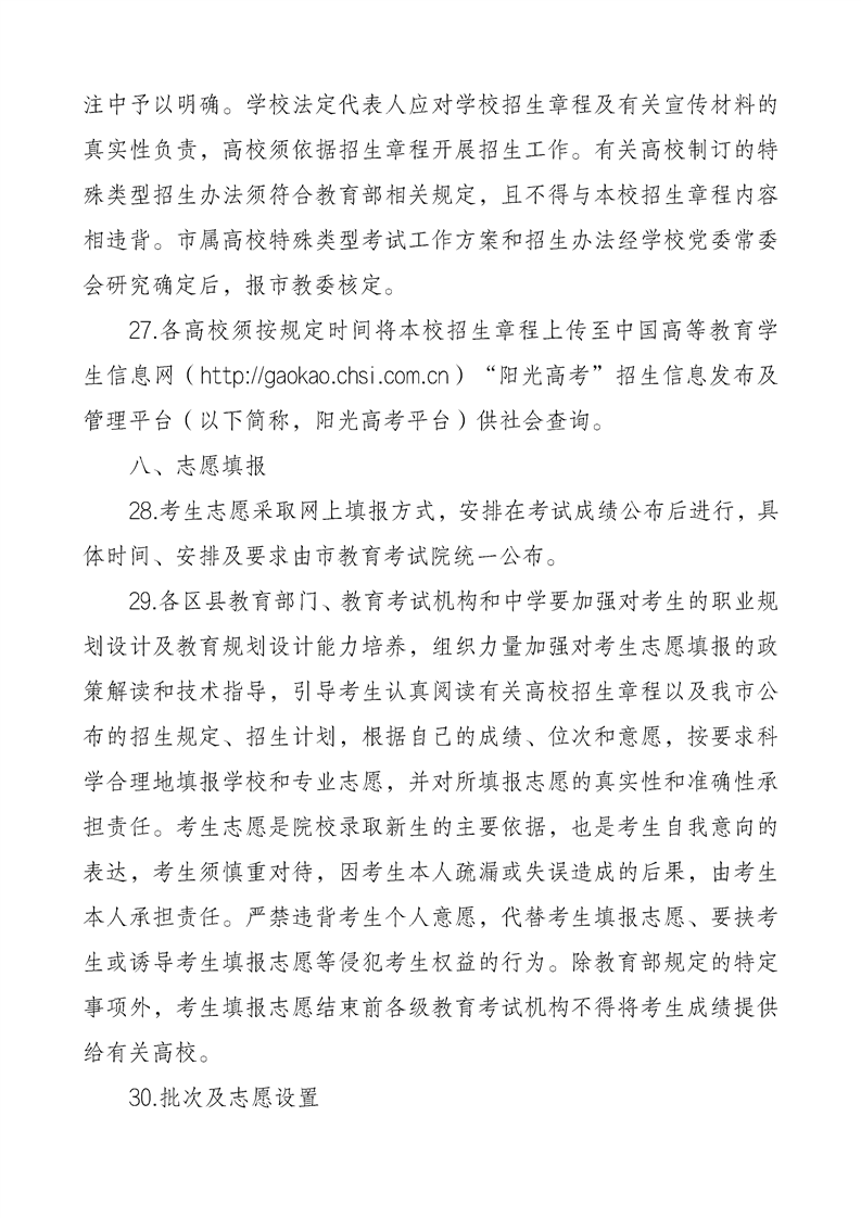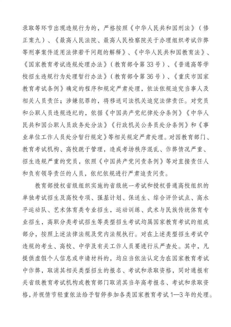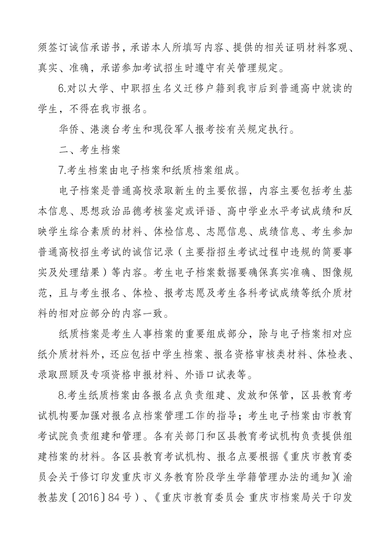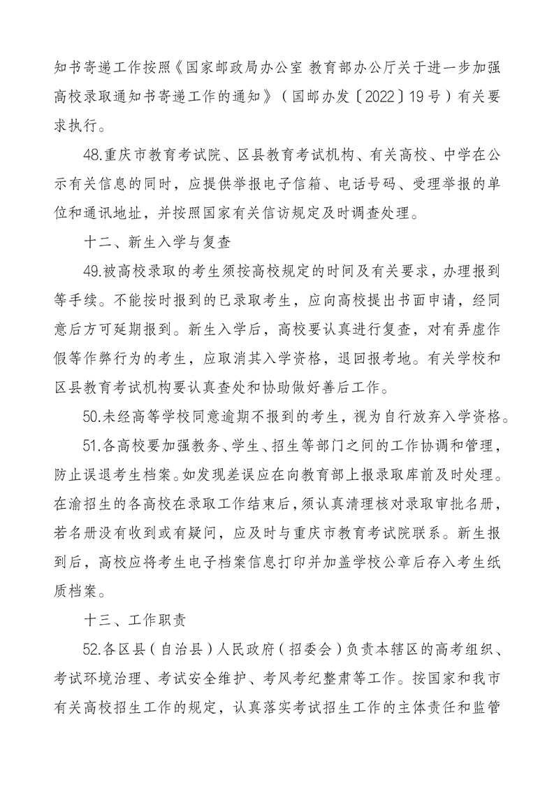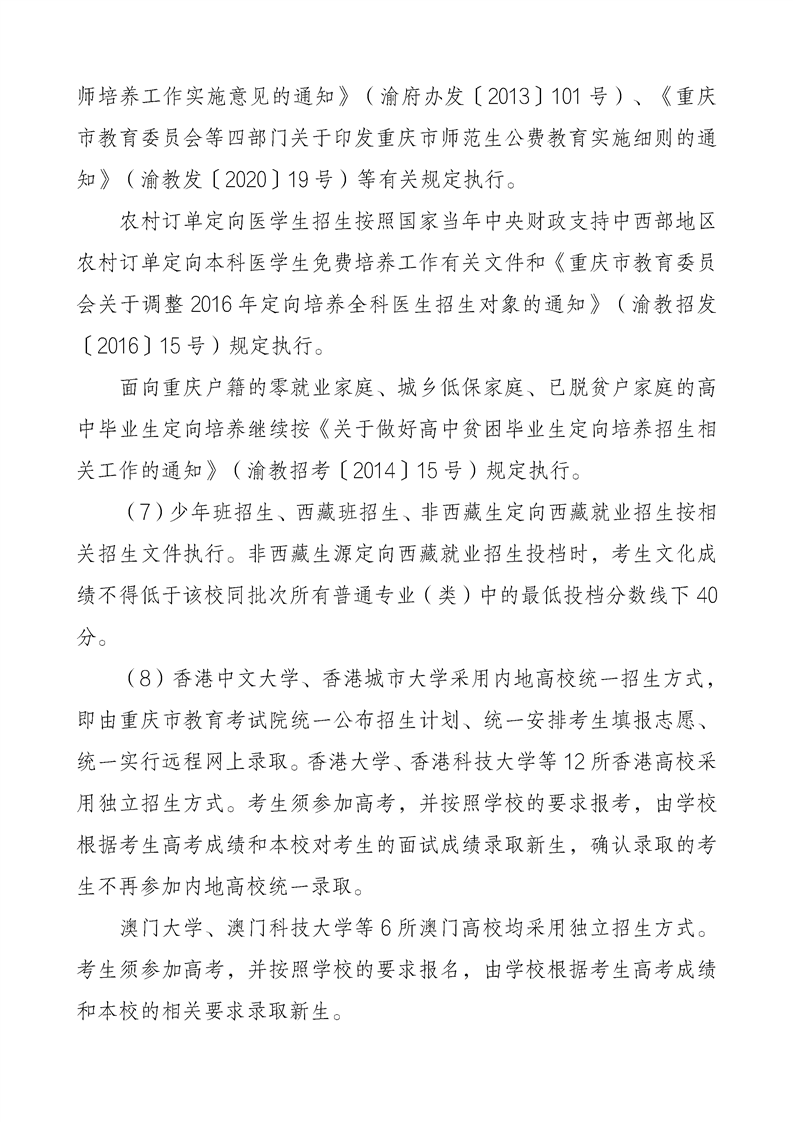 重庆市2024年普通高等学校招生工作实施办法