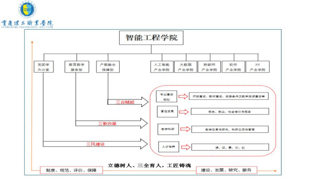 秦凤梅院长也在会议上对本学期工作开展情况,以及校企合作的的推进情况、已取得实质性的成果作出汇报,并对智能工程学院的发展规划做了报告:学院将以“立德树人、三全育人、工匠铸魂”为核心的理念,围绕“制度、规范、评价、保障”开展工作,建设了党团学办公室、教育教学服务部、产教融合保障部,通过“三风建设”、“三教改革”、“三风赋能”以实现人才培养、教学科研、营运发展和专业建设的全面发展。