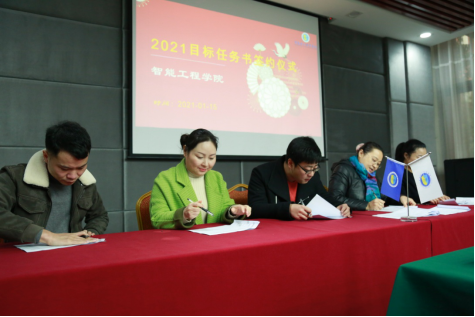 随后秦凤梅院长与学院校企合作单位签订了2021校企合作目标任务书,校企携手,共谋发展。