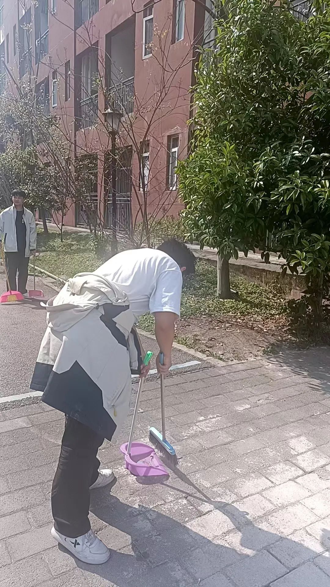 随后,根据区域特点,班级有序划分为“道路清洁组”和“绿化维护组”两支队伍,并为同学们分别配备了扫帚、垃圾钳等清洁工具。此次清扫行动重点对路面垃圾、绿化带杂物以及公共设施污渍进行清理。