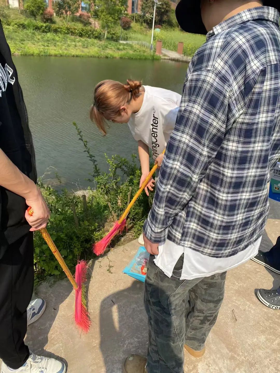 从中央半岛的主干道到2栋楼之间的连廊,20名同学分段包干,认真细致地清扫着每一片区域。落叶、纸屑等垃圾被一一清扫干净,而对于地砖缝隙中顽固的烟头和口香糖残渣,同学们更是蹲下身来,用工具耐心地逐一清除。他们不放过任何一个细节,只为让校园的道路恢复原本的整洁面貌。