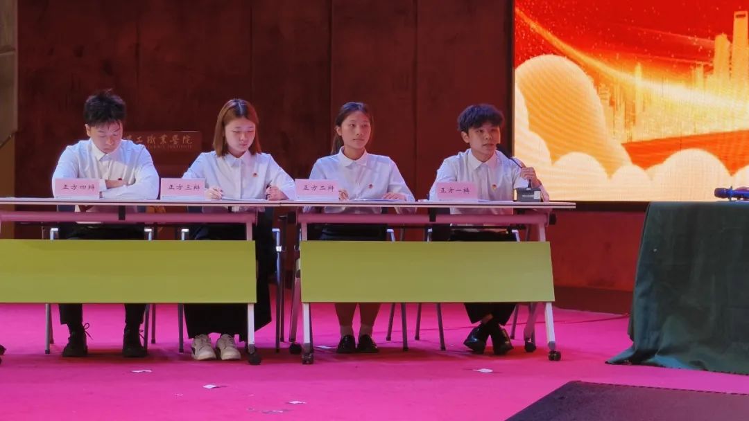 决赛现场,气氛紧张热烈,观众们翘首以盼。第一场,大数据学院“逐梦青春队”与国防财经学院“不要和我们做队”率先登场,双方辩手围绕辩题引经据典、妙语连珠。他们从不同角度剖析问题,用严谨的逻辑和犀利的言辞展开激烈交锋,为观众带来了一场精彩绝伦的思辨盛宴。