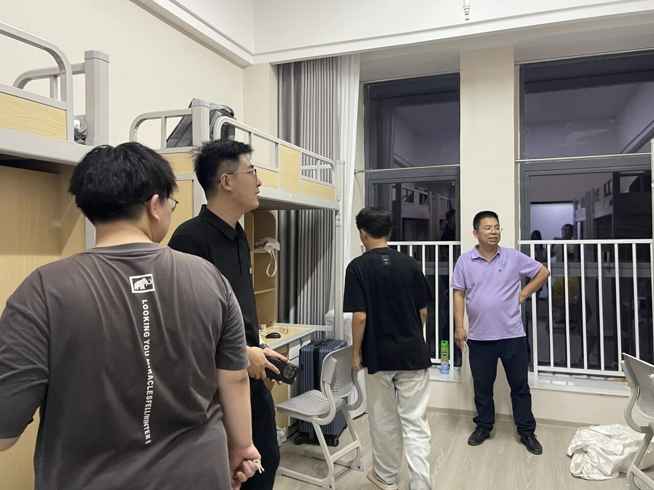 为进一步了解新生入住情况,助力新生快速适应大学生活,8月28日晚大数据学院张婧月院长、罗御豪书记、马权副院长、学工主任唐超文以及新生辅导员和专业教师代表共同深入新生宿舍,开展走访慰问活动。