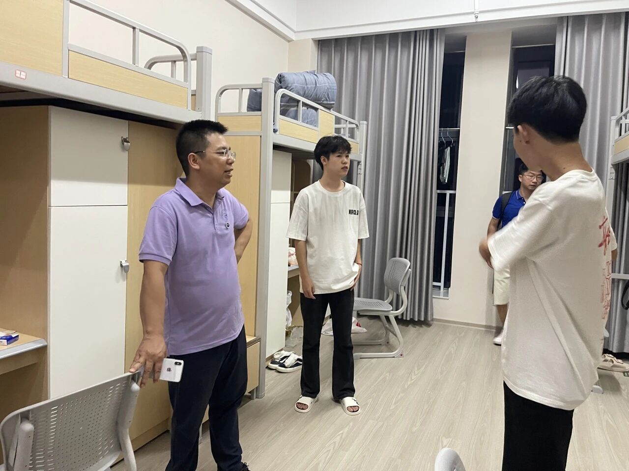 走访最后,老师们提醒新生关注班级 QQ 群消息,及时接收学院通知、参与交流。再次强调安全问题,涵盖用电安全、出行安全等,为新生校园生活筑牢 “安全网” 。