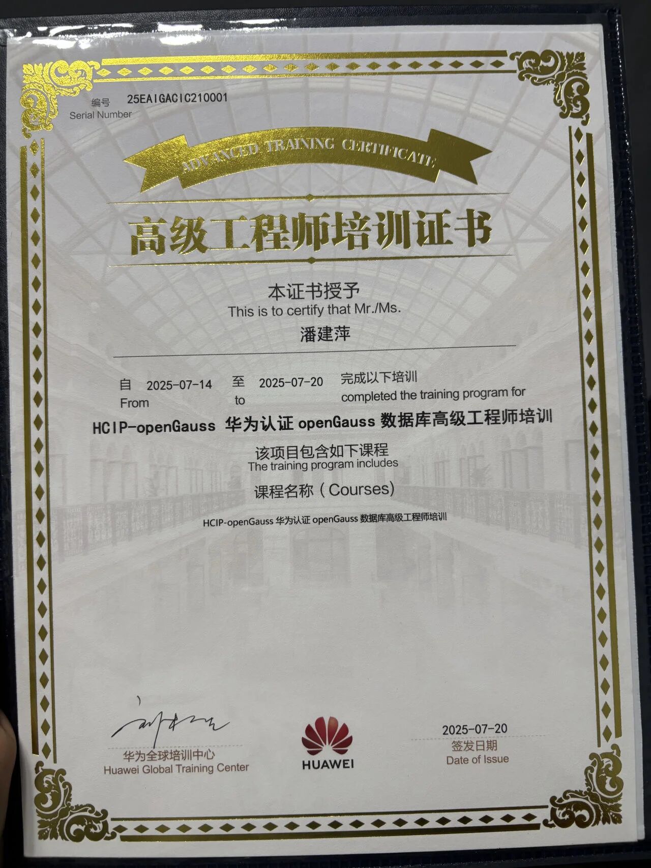 炎炎夏日,我院任书淼、谢孟芸、廖乾坤、潘建萍四位骨干教师奔赴贵州安顺华为云上屯,全身心投入新工科 ICT 技术系列实战化师资培训。经过数日高强度的学习与考核,他们出色完成全部培训内容,顺利拿下培训证书,任书淼、谢孟芸两位老师通过华为AI Solution Architect方向HCIP认证考试,廖乾坤、潘建萍两位老师通过 openGauss 方向HCIP认证考试,为学院师资队伍建设添砖加瓦。