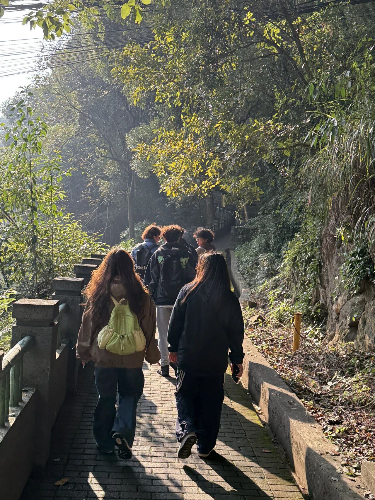 步道越走越深,风景也愈发开阔。有人驻足拍照,有人谈笑同行,有人沉浸在刚刚的红歌旋律中。此次实践,没有攀峰的艰险,也没有迷路的波折,但却有另一种温柔而持久的力量——在自然中修复、在互动中凝聚、在实践中成长。
