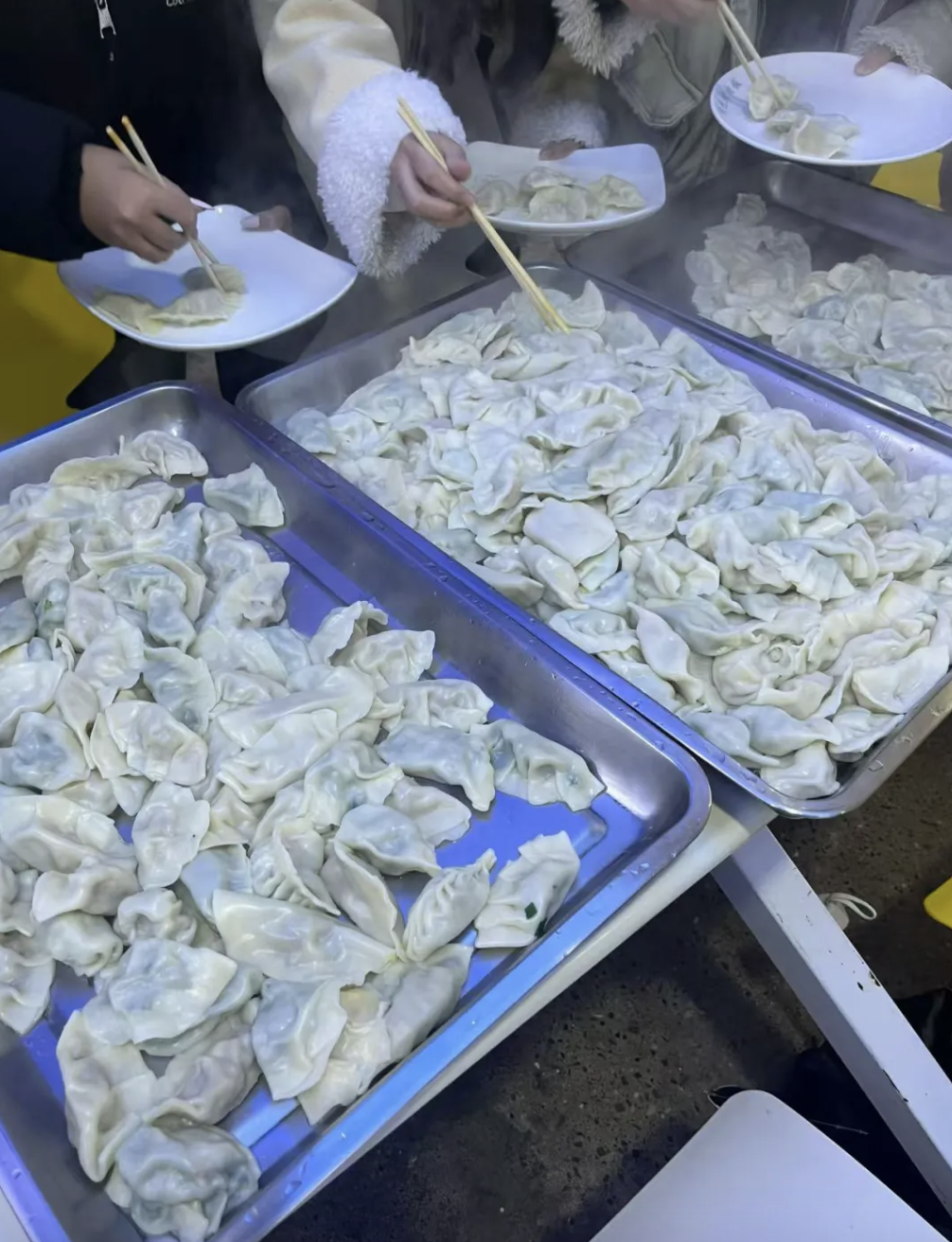 包饺子的温馨场景,化作了联结师生、同窗的暖心桥梁。活动现场,同学们在揉面、包馅间畅谈学习趣事、分享项目实践经验,围绕专业课程热烈探讨学习方法,更有同学借此契机向老师恳切请教未来发展方向。老师们也俯身倾听、耐心答疑,在轻松互动中深入了解同学们的学习状态与心理需求,让知识交流、情感共鸣与成长指引在烟火气中自然流淌,满场皆是温馨融洽的动人氛围。随着一盘盘饺子下锅,热腾腾的蒸汽弥漫在空气中,饺子的香味扑鼻而来。同学们围坐在一起,品尝着自己亲手包的饺子,脸上洋溢着成就感和幸福感。大家纷纷表示,这不仅是一顿简单的午餐,更是一次难忘的集体记忆。