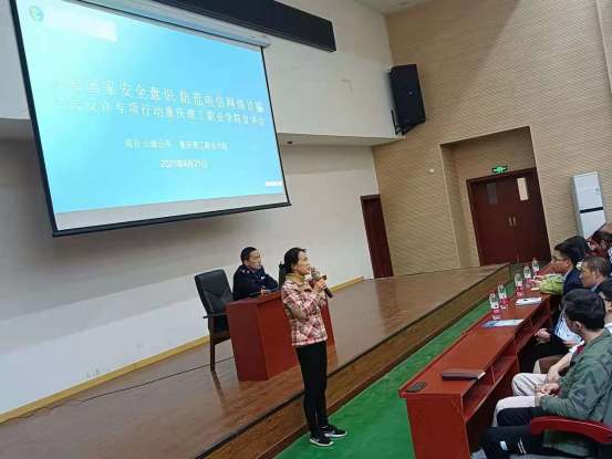 卫生健康学院积极响应国家对打击治理电信网络诈骗犯罪工作,重庆市全面反诈专项行动工作方案,全市将开展为期三年的反诈专项行动。我院于4月21日观音山派出所霍其辉副所长到校为我院师生以《增强国家安全意识,防范电信网络诈骗》主题讲座。