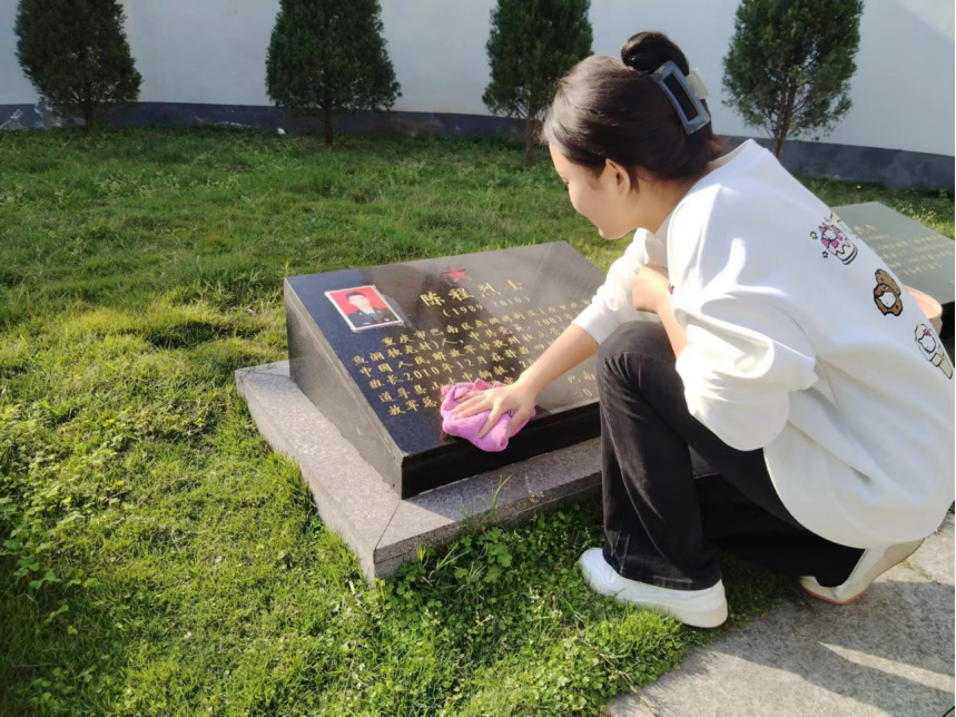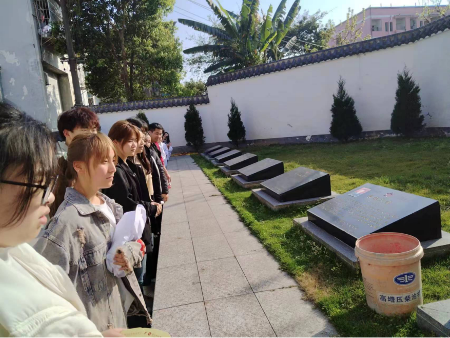 为缅怀先烈,在学工主任秦洪老师和辅导员冯露虹老师的带领下,同学们又来到了界石镇的烈士陵园进行扫墓。通过组织祭扫烈士墓,激发团员们对先烈的崇敬之情,学习先烈们的顽强精神,铭记烈士们为解放国家和民族复兴而不惜牺牲生命的大无畏精神。