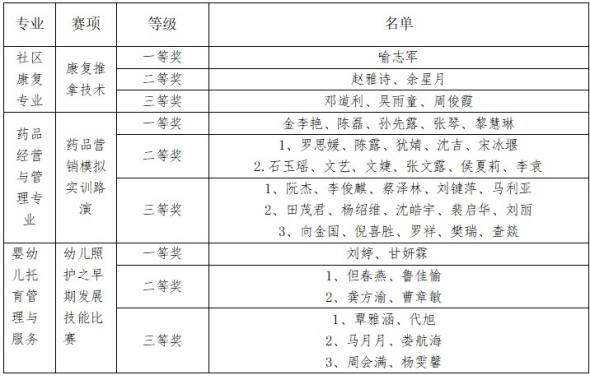 技能大赛共分三个专业赛项,为期两天开展,分别是婴幼儿托育服务与管理专业幼儿照护之早期发展技能比赛、药品经营与管理专业药品营销模拟实训路演比赛、社区康复专业康复推拿技术比赛,同学们积极备赛,在赛场中赛出风格,赛出水平,展示出了不同专业的技能素养水平。