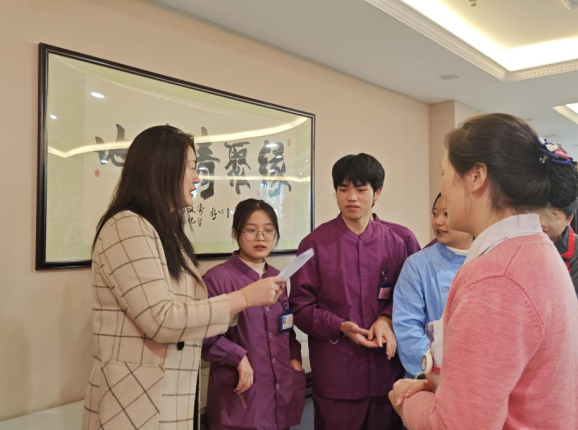 为深入了解实习生在企业实习期间的思想动态,工作与生活情况,传达学校学院对实习学生的关怀,增进与实习单位之间的交流,2023年11月28日上午,在我院董萍萍院长带领下,就业指导老师邢娇,专业教师许莉到重医附一院青杠老年护养中心看望实习生,今年我院共有4名实习生在重医附一院青杠老年护养中心进行实习,往届有3名同学已在该单位就业。