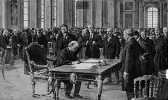 1919年1月,第一次世界大战战胜国在法国巴黎召开所谓的“和平会议”,中国作为第一次世界大战协约国之一,参加了会议。中国代表在和会上提出废除外国在中国的势力范围、撤退外国在中国的军队和取消二十一条”等正义要求,但巴黎和会无视中国也是战胜国之一,拒绝了中国代表提出的要求,竟然决定将德国在中国山东的权益转让给日本。此消息传到中国后,北京学生群情激愤,学生、工商业者、教育界和许多爱国团体纷纷通电,斥责日本的无理行径,并且要求中国政府坚持国家主权。在这种情况下,和会代表提交了关于山东问题的说帖,要求归还中国在山东的德租界和胶济铁路主权,以及要求废除“二十一条”等不合法条约。但结果,北洋政府服于帝国主义的压力,居然准备在《协约国和参战各国对德和约》上签字。最终,英、美、法、日、意等国不顾中国民众呼声,在1919年6月28日还是签订了《协约国和参战各国对德和约》,即凡尔赛和约》,仍然将德国在山东的权利转送日本。在巴黎和会中,中国政府的外交失败,直接引发了中国民众的强烈不满,从而引发了五四运动,在这样强大的压力下,中国代表最终没有出席巴黎和会的签字仪式。