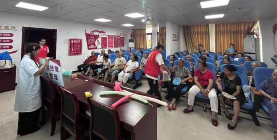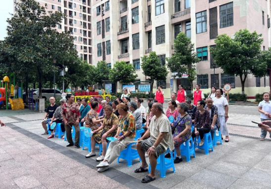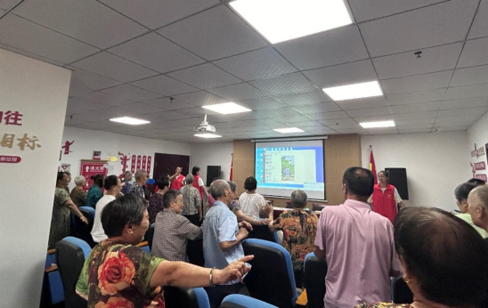 经过讲解后,现场进行知识竞答。在提问过程中,不仅巩固了讲解的知识,还调动了大家的积极性。竞答结束后,我们便带领大家学习八段锦。八段锦是一种传统健身功法,包括8个简单、缓慢和放松的动作。坚持练八段锦,可以增强体质、提高生活质量、改善平衡和身体灵活性、增加运动耐受力等。