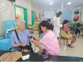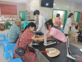 接着就是义诊服务,队员们为大家进行健康咨询、测血压、肩颈按摩等,细心叮嘱大家要养成良好的生活习惯和饮食方式,告诉大家如何预防高血压、高血糖以及其他疾病,通过此方式让大家感受到温暖,也提升了居民的健康意识。