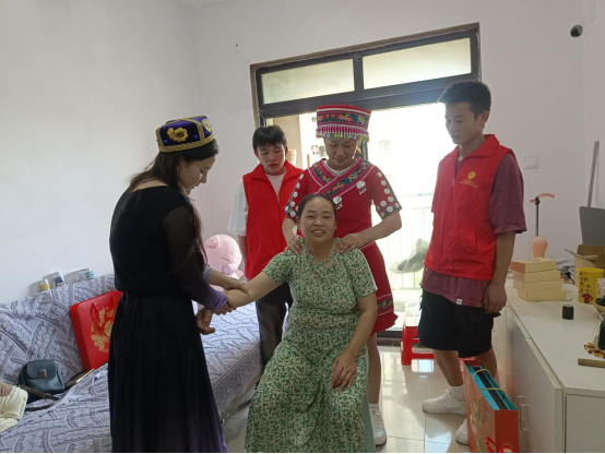 值此中秋佳节来临之际,让空巢老人感受到关怀与温暖,社区工作人员带领同学们分别深入居民家中走访慰问,询问他们的情况,叮嘱他们要保重身体照顾好自己,志愿者为他们送上月饼,并致以节日祝福。