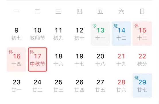 放假时间:9月15日(周日)-17日(周二),共3天