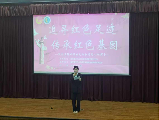 为庆祝中华人民共和国成立75周年,传承红色基因,弘扬爱国主义精神,卫生健康学院于2024年10月14日晚18:00在图书馆阶梯教室,开展了以“追寻红色足迹,传承红色基因”为主题的“红色故事”演讲初赛。本次比赛由张雪艳老师、邢娇老师、冯露虹老师、谭定权老师担任评委。