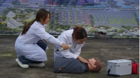 卫生健康学院祝天琪同学为师生们现场演示了心肺复苏、止血包扎等急救技能。师生们认真观看、学习,并积极参与互动,通过实际操作加深了对急救知识的理解和掌握。这一环节不仅提高了师生们的自救互救能力,也为他们在紧急情况下能够及时救助他人提供了有力保障。