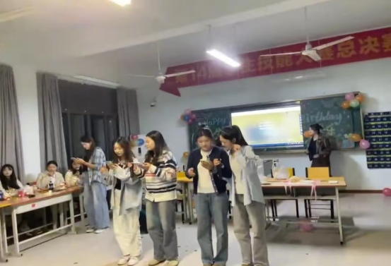 打开教学楼2205的大门,现场已被同学们精心布置好,气球、蛋糕和美食,氛围感十足。生日晚会在同学们的祝福声中拉开了帷幕,欢声笑语充斥着每个角落。随后,主持人宣布晚会正式开始。