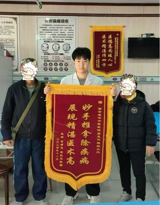 程女士和黄先生因中风导致半身不完全性偏瘫困扰,导致半身肢体僵硬、行动不便,严重影响了日常生活和工作。在尝试了多种治疗方法未果后,他们慕名来到了秦华中医医院康复推拿科,寻求专业的康复推拿治疗。在这里遇到了谭秋医生,谭秋医生详细询问了程女士和黄先生的病史,通过专业的检查和评估,为夫妻二人量身定制了一套个性化的康复推拿治疗方案。在治疗过程中,谭秋医生不仅运用了自己精湛的推拿手法,还耐心地向程女士和黄先生讲解中风后的保健和康复相关知识,帮助夫妻二人树立正确的康复观念。经过几个疗程的治疗,程女士和黄先生的中风后遗症的症状得到了显著改善,让行动不便的夫妻二人生活质量大幅提升。康复后的夫妻二人对谭秋医生的治疗效果和贴心服务深感满意,为了表达内心的感激之情,特意定制了一面锦旗,夫妻二人将一面写有“展现精湛医术高,妙手推拿除疾病”的锦旗亲手赠予了康复推拿科的医生谭秋,以此表达对其精湛医术和无私奉献的深深感谢。这一举动不仅是对谭秋医生个人医术的高度认可,也是对整个康复推拿团队辛勤付出的肯定,更是对学校教育教学工作的认可。
