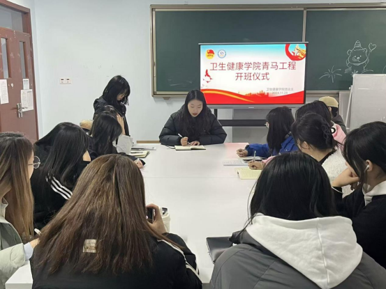 仪式开始团总支书记秦洪老师做开班动员讲话,他强调了青马工程在新时代背景下对于培养青年政治骨干、传承红色基因的重要性,同时鼓励学员们珍惜此次难得的学习机遇,潜心钻研马克思主义理论,努力将自身塑造为坚定的马克思主义信仰者与忠诚的实践者。在之后的讲话中秦老师提到:“我们通过此次的系统培训学习,培养大家要有马克思列宁主义理论的修养,提高政治觉悟,传承党的事业,了解时政,关注国家发展。并说到青年得有理想有担当,肩负党和国家未来事业的重大责任,坚定不移听党话跟党走。共同成长共同进步!”
