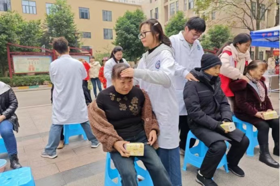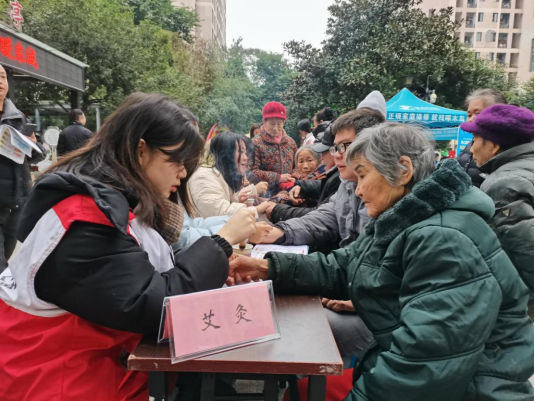 本次活动由团总支书记秦洪老师和辅导员谭定权老师带队深入社区,为社区居民们提供血压测量、艾灸、肩颈按摩、健康咨询等服务。活动现场,来访的居民络绎不绝,同学们热情接待,耐心细致地为社区居民讲解冬季健康知识,进行知识科普。
