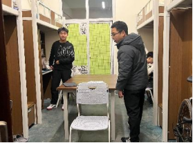 在班会结束后,董院长与秦主任在各班辅导员的陪同下来到学生宿舍,开启了一场温馨的“宿舍之约”。每走进一间宿舍,他们都亲切地与同学们交谈,询问大家的返校感受、生活需求以及假期生活情况。看到宿舍环境整洁、物品摆放有序,院长对此表示满意,并对同学们良好的生活习惯提出表扬。在与同学们的交流中,董院长和秦主任关心同学们在学习和生活中遇到的困难,耐心倾听他们的心声,并当场给予解答和建议。针对同学们提出的关于专业课程学习的困惑,秦主任详细介绍了学院的教学资源和学习方法,鼓励大家遇到问题及时向老师和学院反映,学院将全力为大家排忧解难。同学们纷纷表示,在新学期将以更加饱满的热情投入到学习和生活中,不辜负学院领导和老师们的期望,努力成长为有担当、有作为的人。