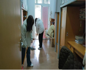 活动当天,团员们积极参与到宿舍的清洁和整理工作中。他们手持扫帚、拖把等清洁工具,认真清扫宿舍内外的每一个角落。在宿舍楼外,团员们清扫了地面,确保了环境的整洁;在宿舍内部,他们分工合作,有的负责拖地,有的负责整理床铺和书桌,确保宿舍的整洁有序。