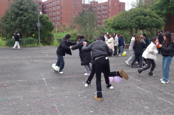 在保卫气球的趣味角逐中,参与者们紧密协作,全神贯注投入这场力量与智谋的较量。一方面,他们时刻警惕周遭,小心翼翼守护自己的气球,使其免遭践踏;另一方面,又敏锐捕捉时机,巧妙施展策略,试图踩破他人气球。现场气氛热烈非凡,欢笑声、呼喊声交织回荡 ,奏响一曲青春活力的交响乐。